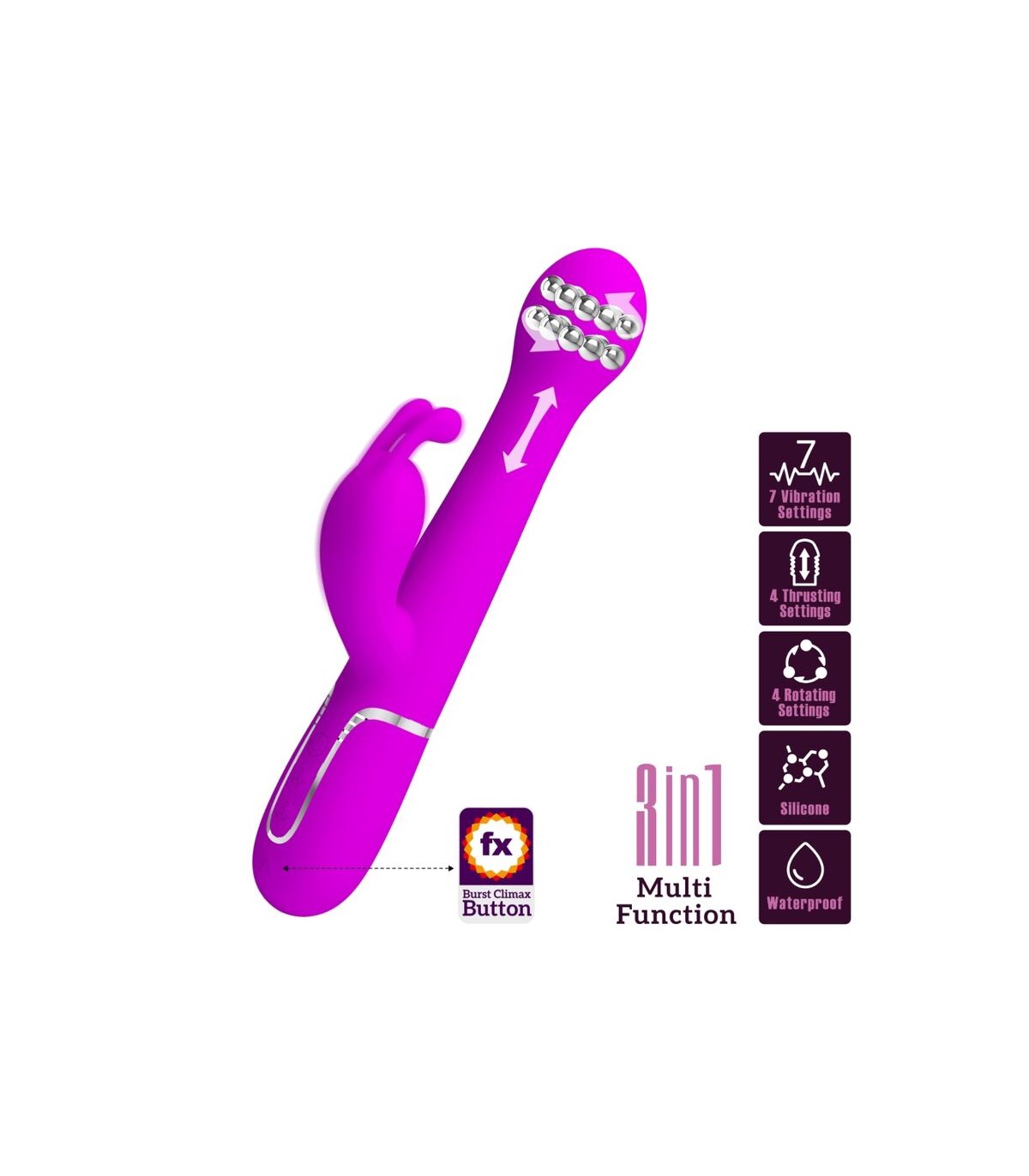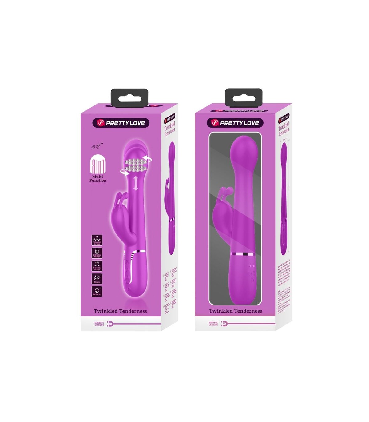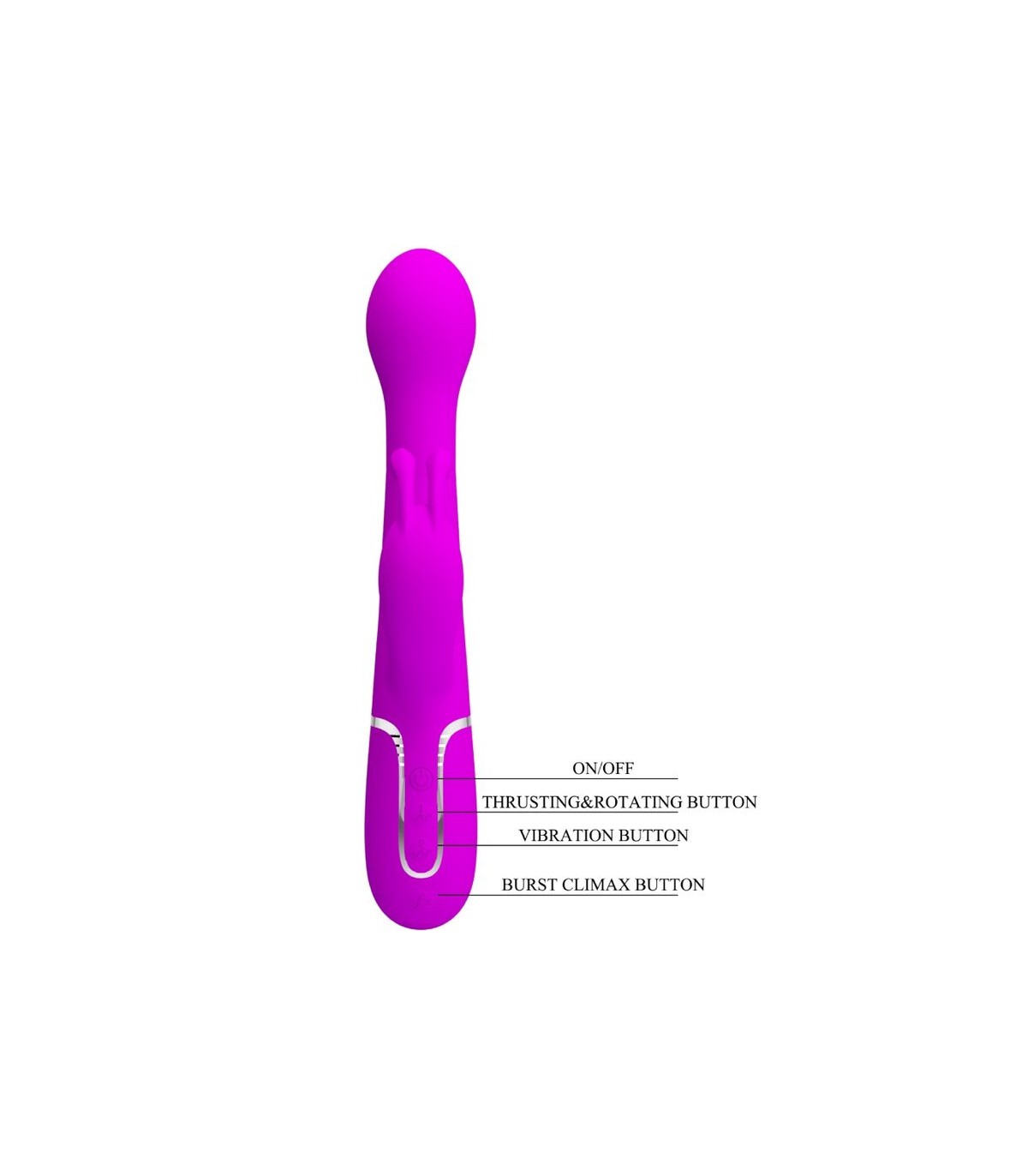 Diseñado para el máximo placer, quédate en la cama con el Vibrador Conejo Pretty Love. Con potentes motores gemelos, uno ubicado en la punta y el otro en el brazo externo, te prometemos que encontrarás tu vibración perfecta mientras 7 intensidades y ritmos de vibración te llevan a un poderoso clímax combinado. Con una sola fila de perlas rígidas que viajan hacia arriba y hacia abajo en un emocionante masaje íntimo, disfrute de las tres configuraciones de velocidad mientras frota constantemente su sensible punto dulce. Para mayor placer, presione el botón Burst Climax para explorar sus increíbles y trascendentales orgasmos.