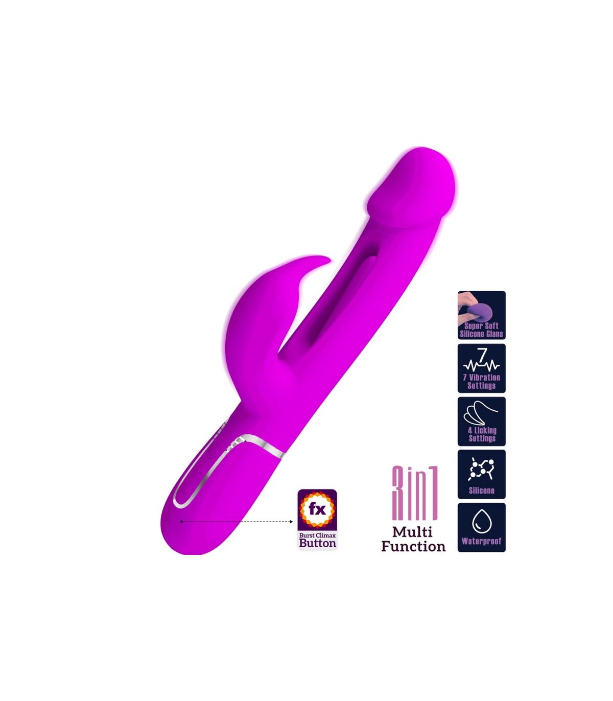 PRETTY LOVE - KAMPAS VIBRADOR RABBIT 3 EN 1 MULTIFUNCIÓN CON LENGUA FUCSIA