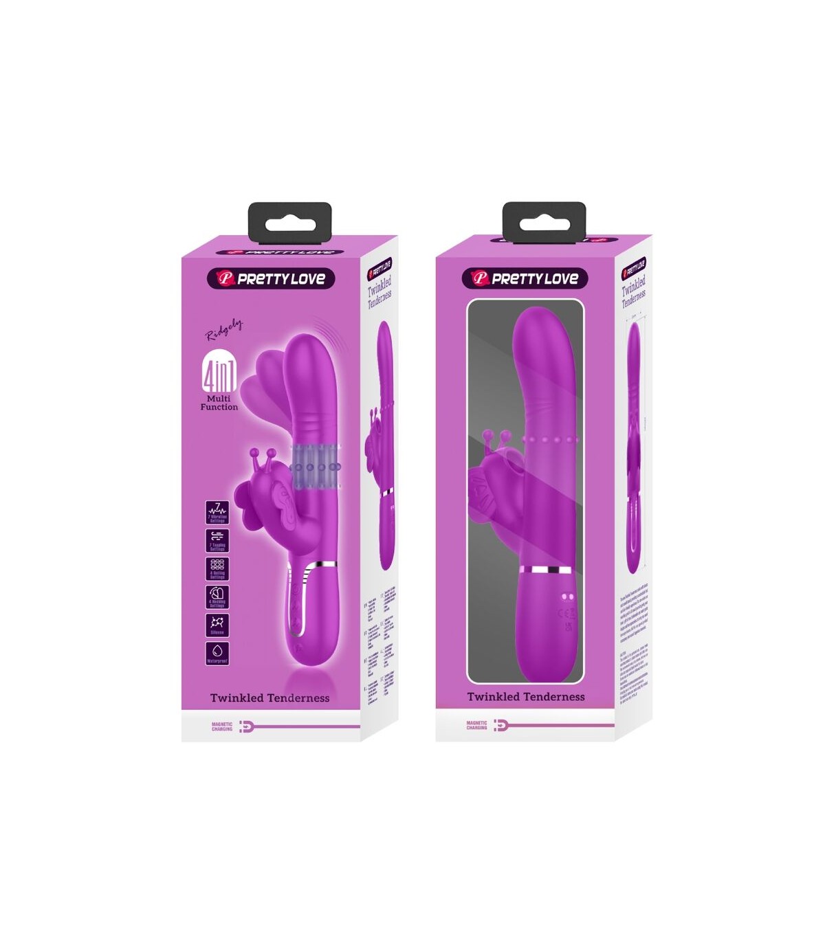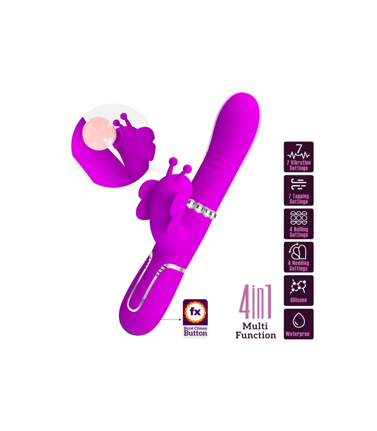 PRETTY LOVE - VIBRADOR RABBIT MULTIFUNCIÓN 4 EN 1 MARIPOSA FUCSIA