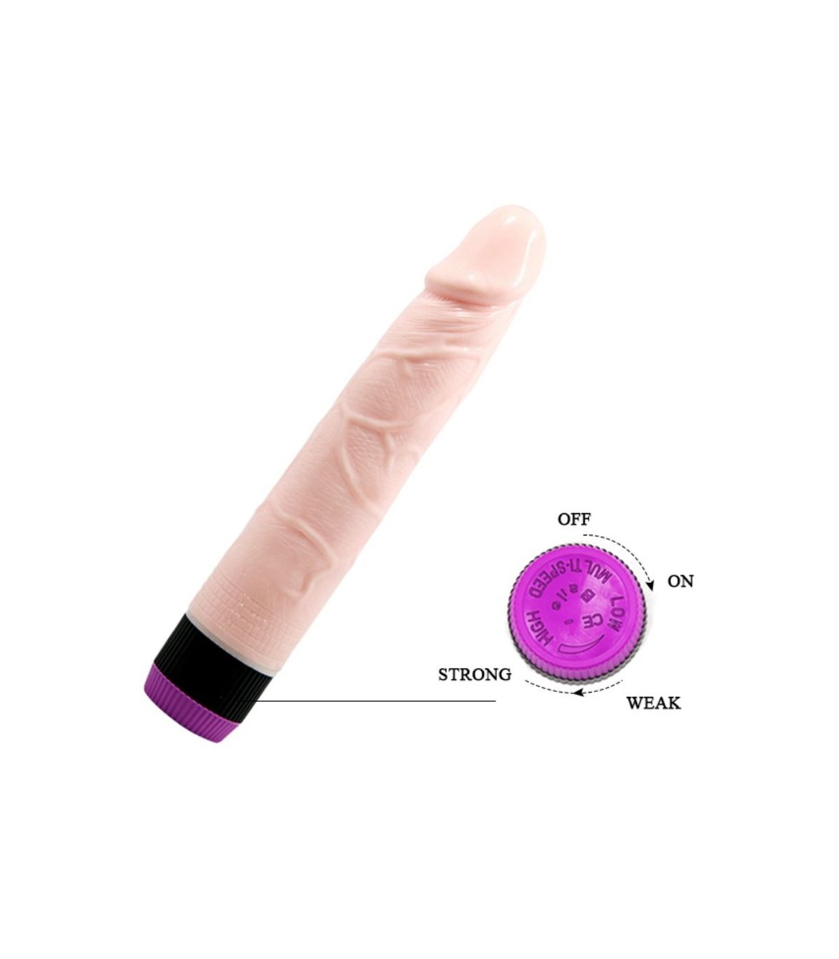 Este super juguete es un vibrador con una textura super suave y vibraciones increiblemente potentes que te mantendrán activa toda la noche. Su diseño ultrarealístico con venas marcadas y glande perfecto más sus potentes vibraciones son pura delicia, además son fácil de controlar con su dial de la base.