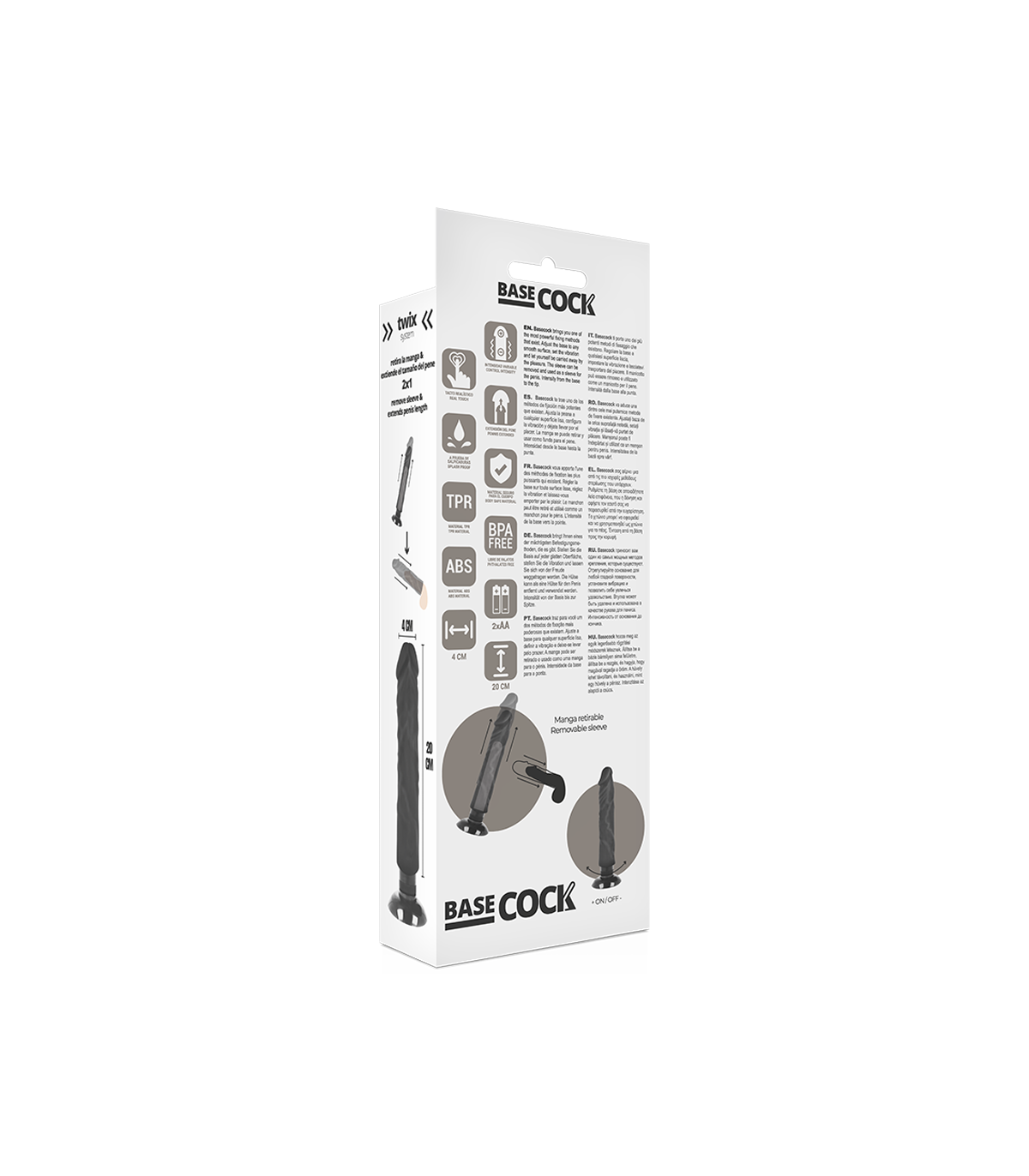 BASECOCK - VIBRADOR REALÍSTICO 2-1 NATURAL 20 CM -O- 4 CM