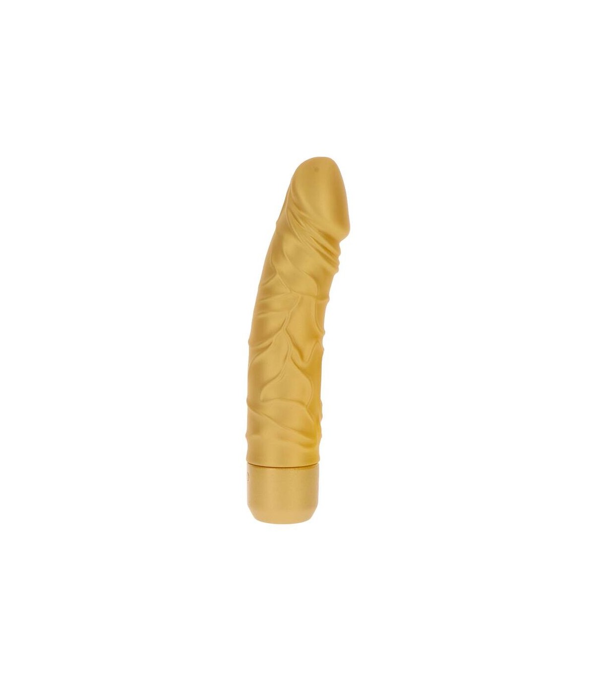 Este proveedor de placer dorado tiene una silueta realista que presenta detalles realistas como venas palpitantes y una punta pronunciada.