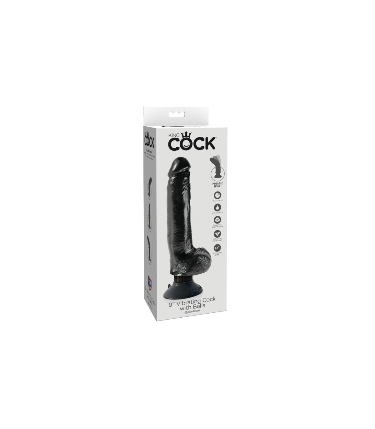KING COCK - DILDO VIBRADOR CON TESTÍCULOS 23 CM NEGRO