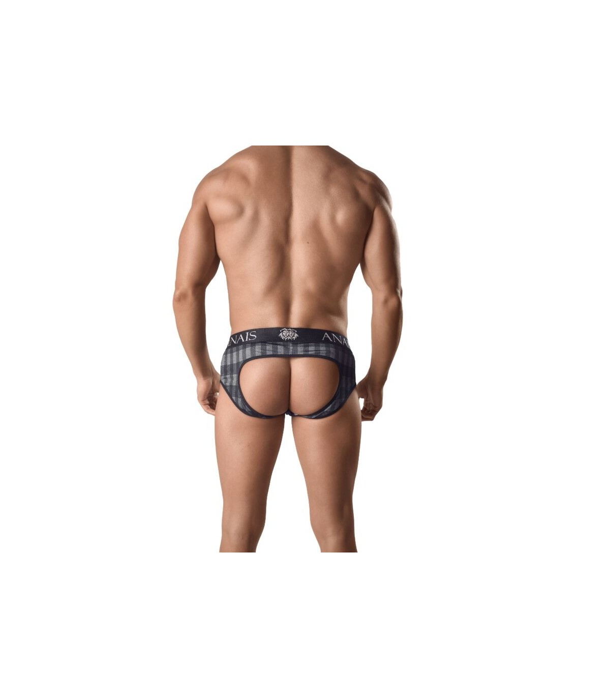 Jock bikini, con estampado de cuadros en tonos grises y trasero al descubierto