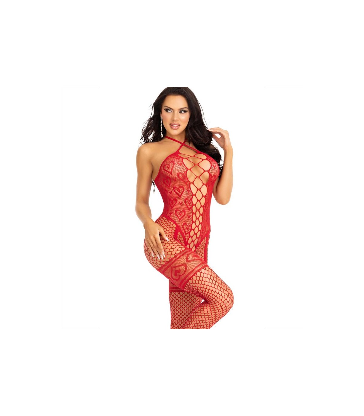 El cuello halter agrega un toque de gracia y sensualidad, realzando la línea del cuello y proporcionando una silueta favorecedora. La red de corazones, por su parte, agrega un elemento juguetón y romántico, permitiendo que la piel se asome de manera sugerente.