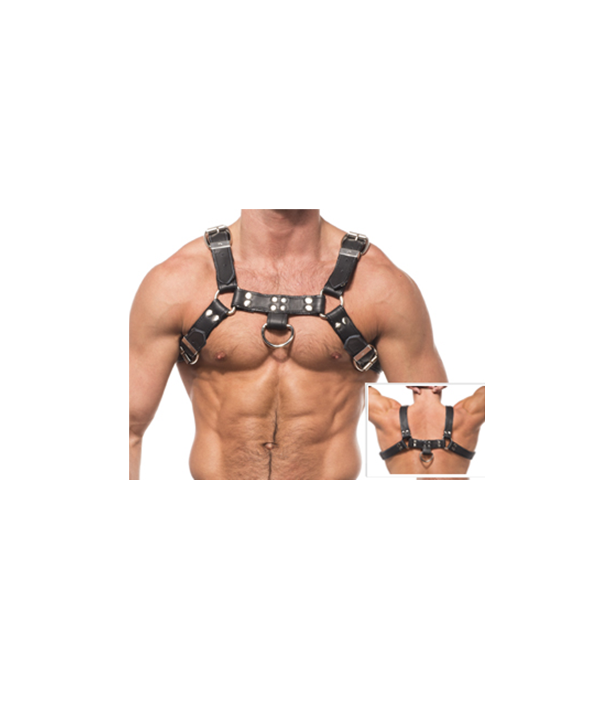 Practica el BDSM, con este Arnes leather para hombre, completamente enlazado y correas ajustables con cadenas de metal