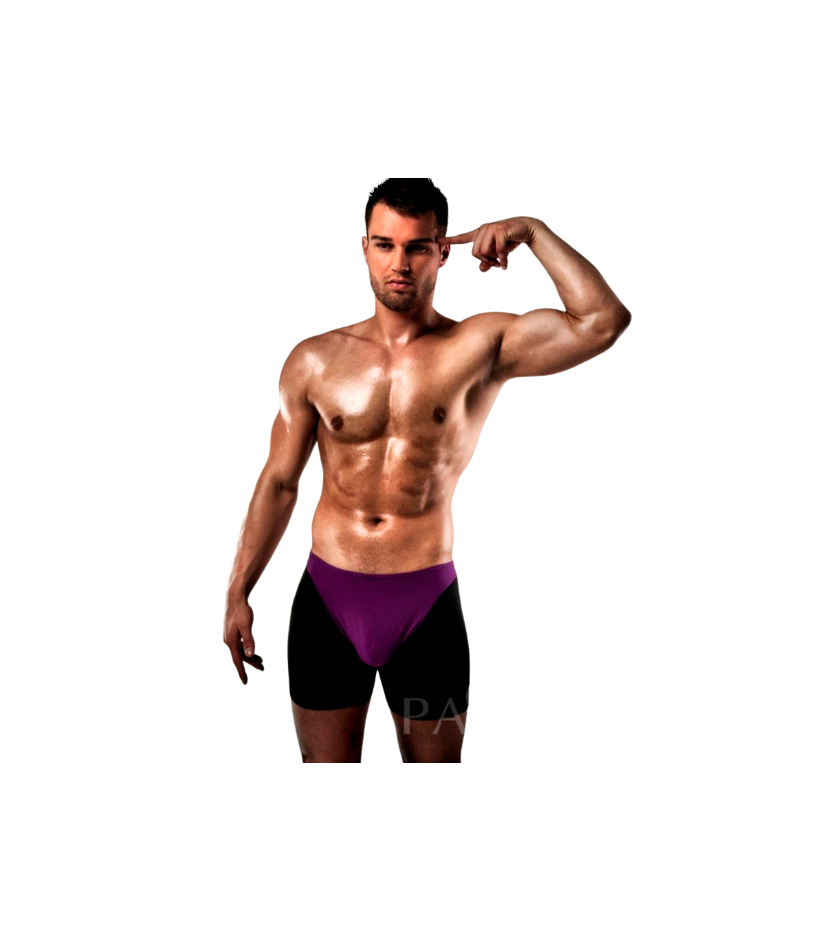 Boxer de color negro liso en la parte inferior y lila en la parte superior, si lo miras pro delante parece un boxer normal, en la parte trasera es realmente sexy..para momentos especiales llevando a un climax erotico..sensual o para tu vida diaria de la coleccion Passion Lingerie Men.