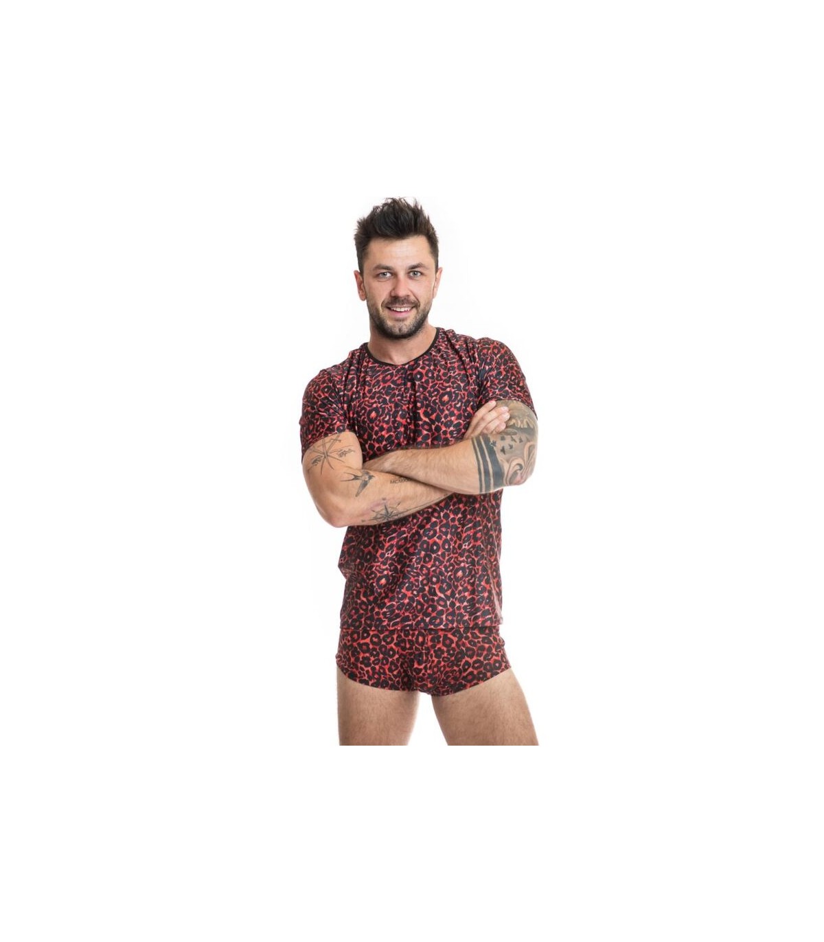 Suave microfibra roja con un hermoso y expresivo estampado animal