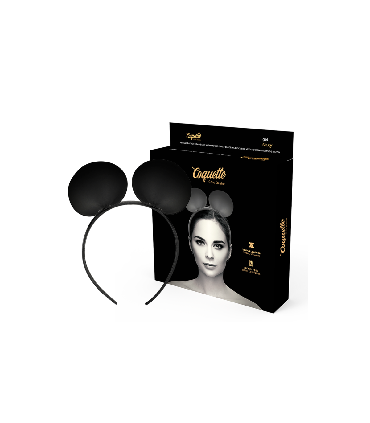 Original diadema con orejas de mouse fabricado en cuero vegano. Un producto original que puede complementar tus conjuntos de lencería.