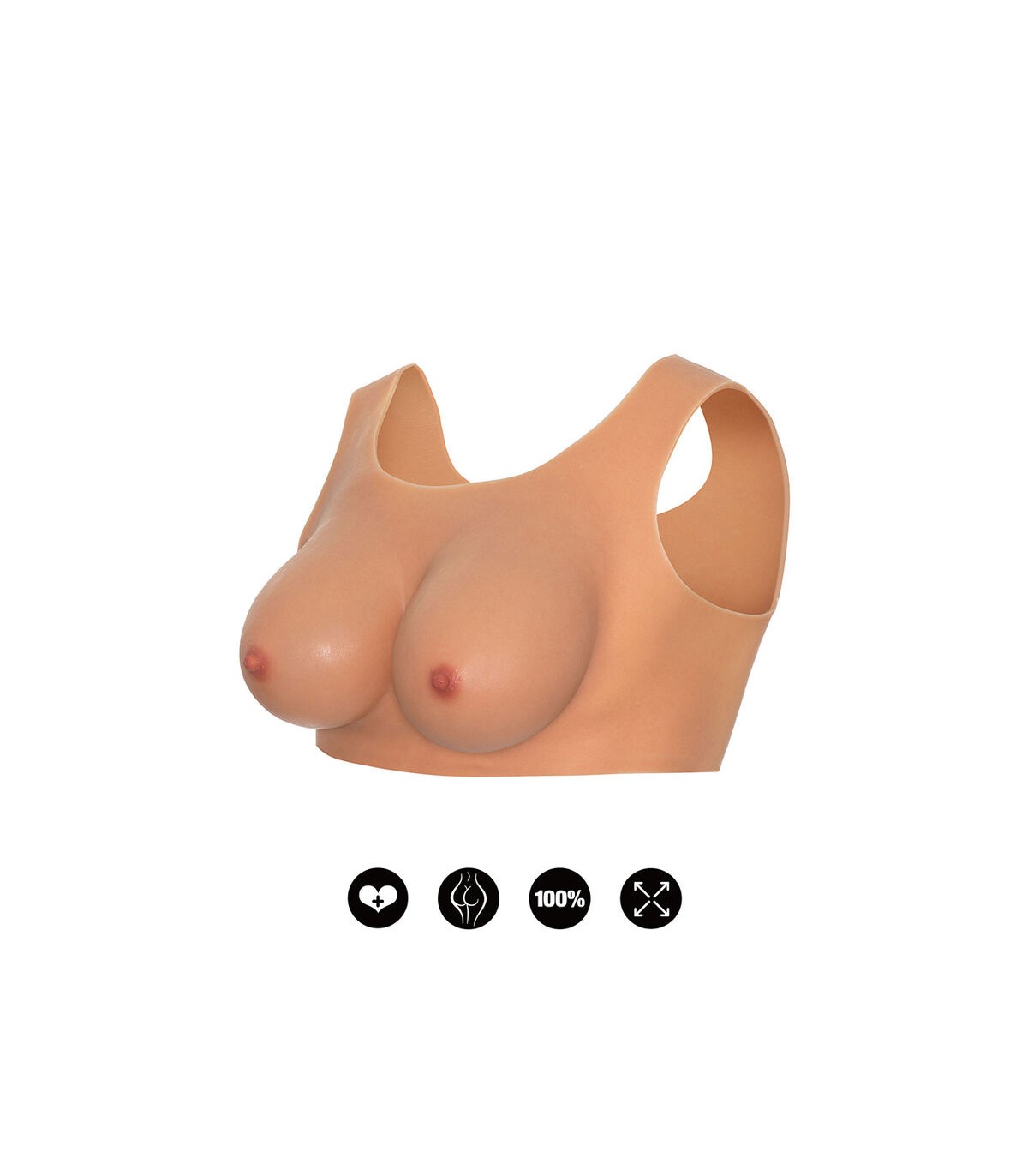 Fabricado en silicona 100 % pura, este top destaca por su tacto suave, su flexibilidad y su resistencia. Incorpora pechos voluminosos y blandos, diseñados para ofrecer una sensación realista al tacto, junto con pezones detallados que aportan un alto nivel de autenticidad. El diseño está pensado para mantenerse estable y cómodo durante el uso, permitiendo libertad de movimiento sin renunciar al realismo.