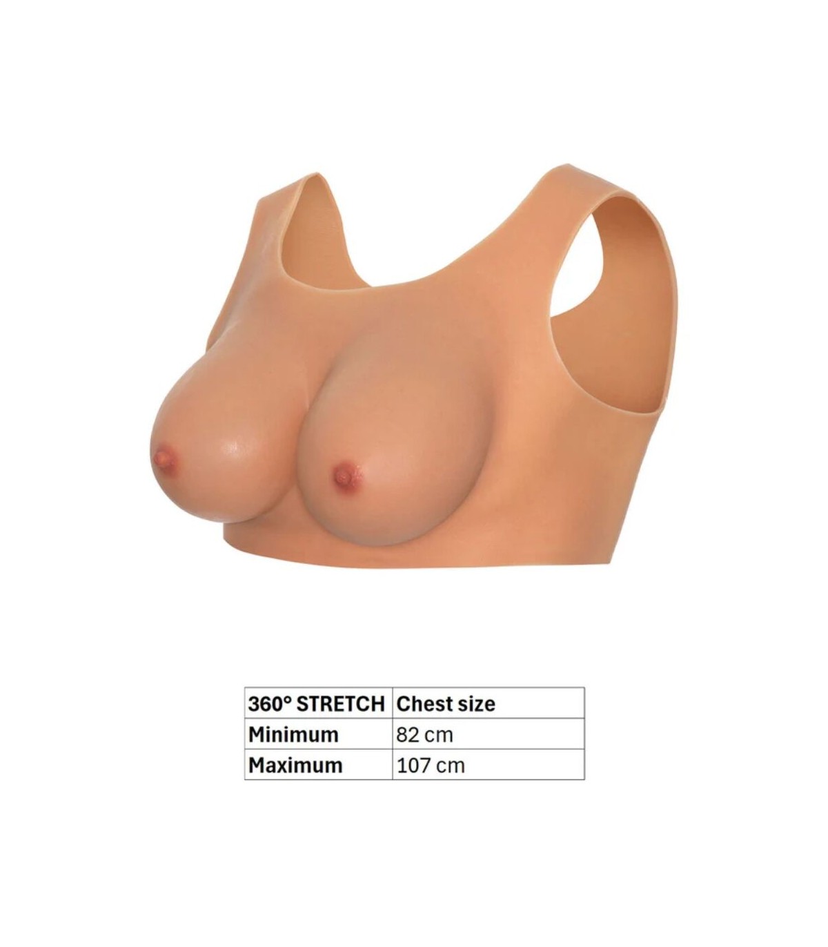 Fabricado en silicona 100 % pura, este top destaca por su tacto suave, su flexibilidad y su resistencia. Incorpora pechos voluminosos y blandos, diseñados para ofrecer una sensación realista al tacto, junto con pezones detallados que aportan un alto nivel de autenticidad. El diseño está pensado para mantenerse estable y cómodo durante el uso, permitiendo libertad de movimiento sin renunciar al realismo.