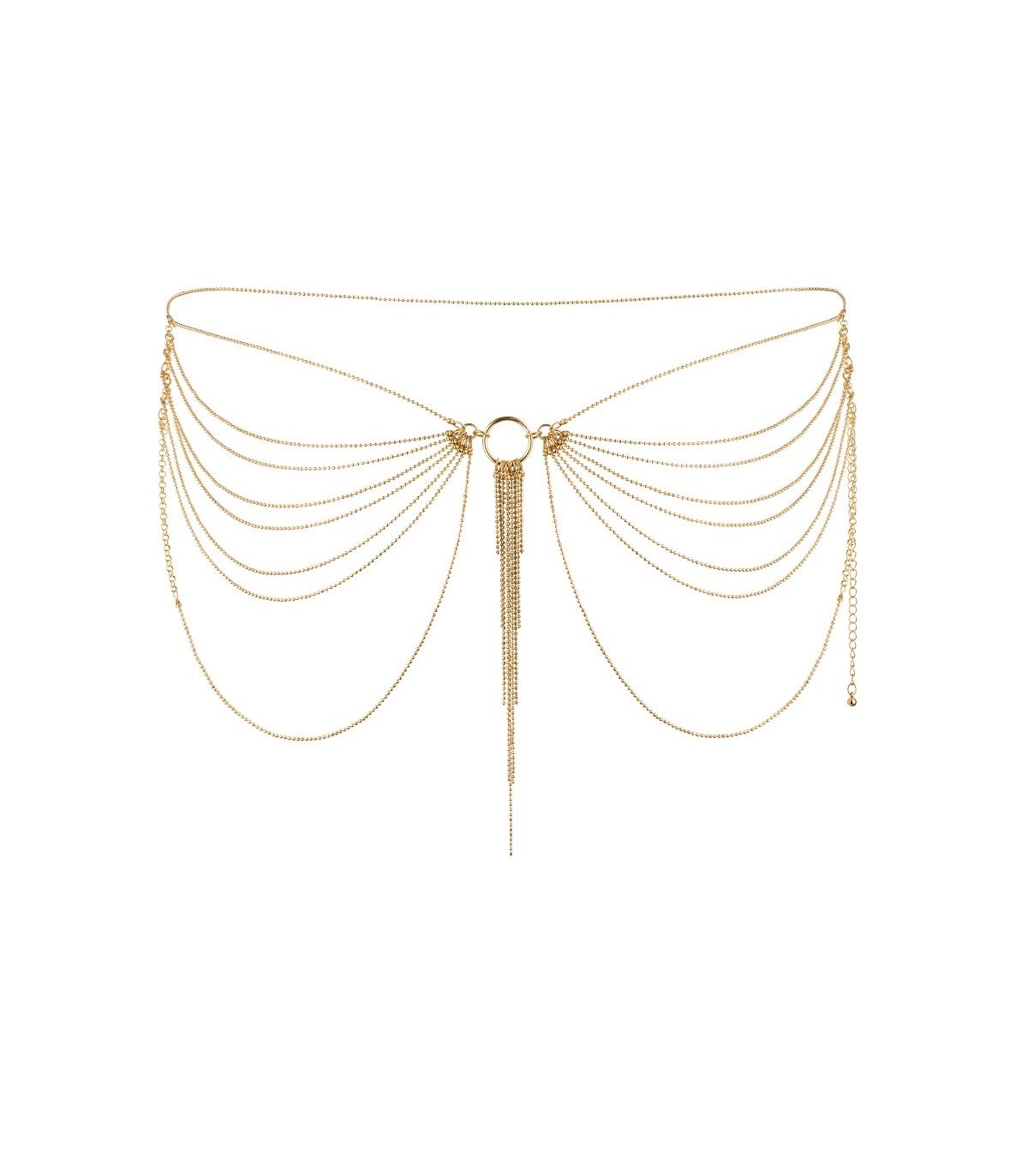 ¡Más usos! Prueba este complemento como un fantástico cinturón o como un sugerente sostén de cadenas doradas.