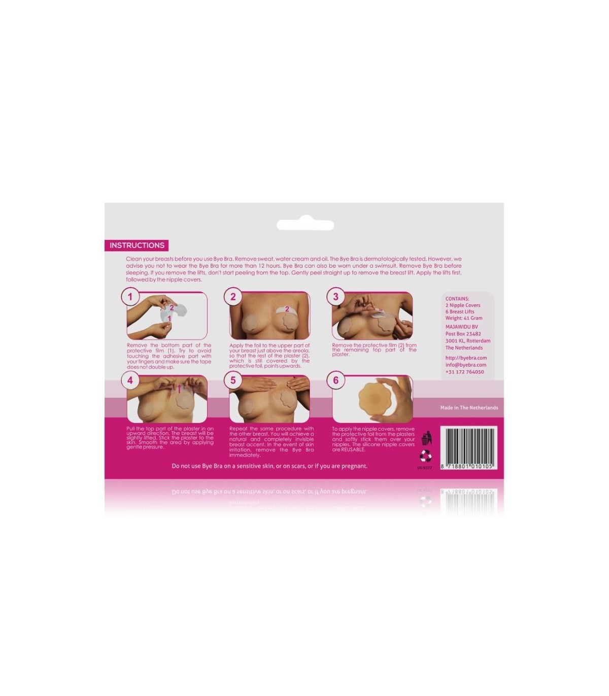 El ByeBra es una solución eficaz para mejorar la apariencia de los pechos femeninos sin necesidad de bisturí y sin sujetador. Byebra es una lámina muy delgada y flexible, autoadhesiva, en forma de herradura fabricada en cooperacion con 3M (fabricante de adhesivos medicos).