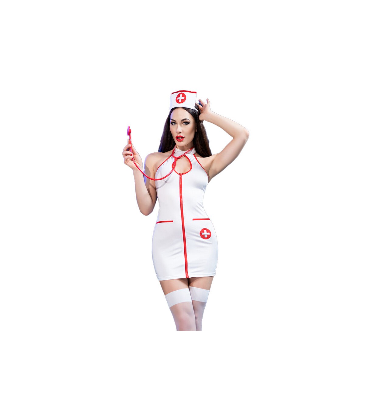 CR 4430 el conjunto completo ofrece una representación temática y sensual de una enfermera, perfecta para fiestas de disfraces, eventos temáticos o cualquier ocasión donde se busque un toque de diversión y coquetería.