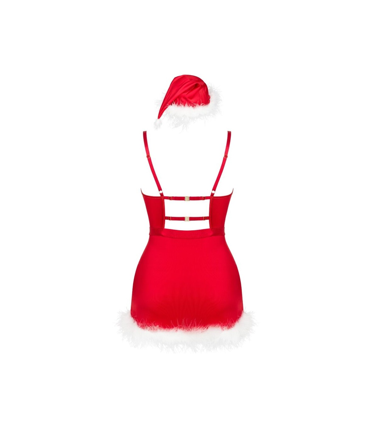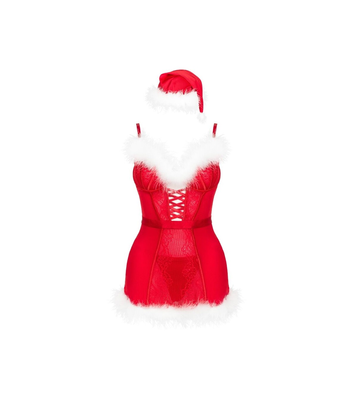 La camisa, con su estética navideña y detalles llamativos, aporta el toque principal del look y aporta un aire festivo irresistible. La braguita, suave y elástica, complementa el conjunto con un estilo coqueto y sensual. El gorro navideño, divertido y temático, añade un punto juguetón que completa el outfit, ideal para celebraciones, sesiones fotográficas o momentos especiales llenos de magia. Este conjunto es perfecto para sorprender en una ocasión especial, disfrutar de una noche temática o simplemente contagiar el espíritu navideño con estilo y un toque atrevido.