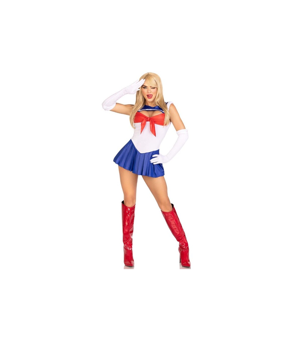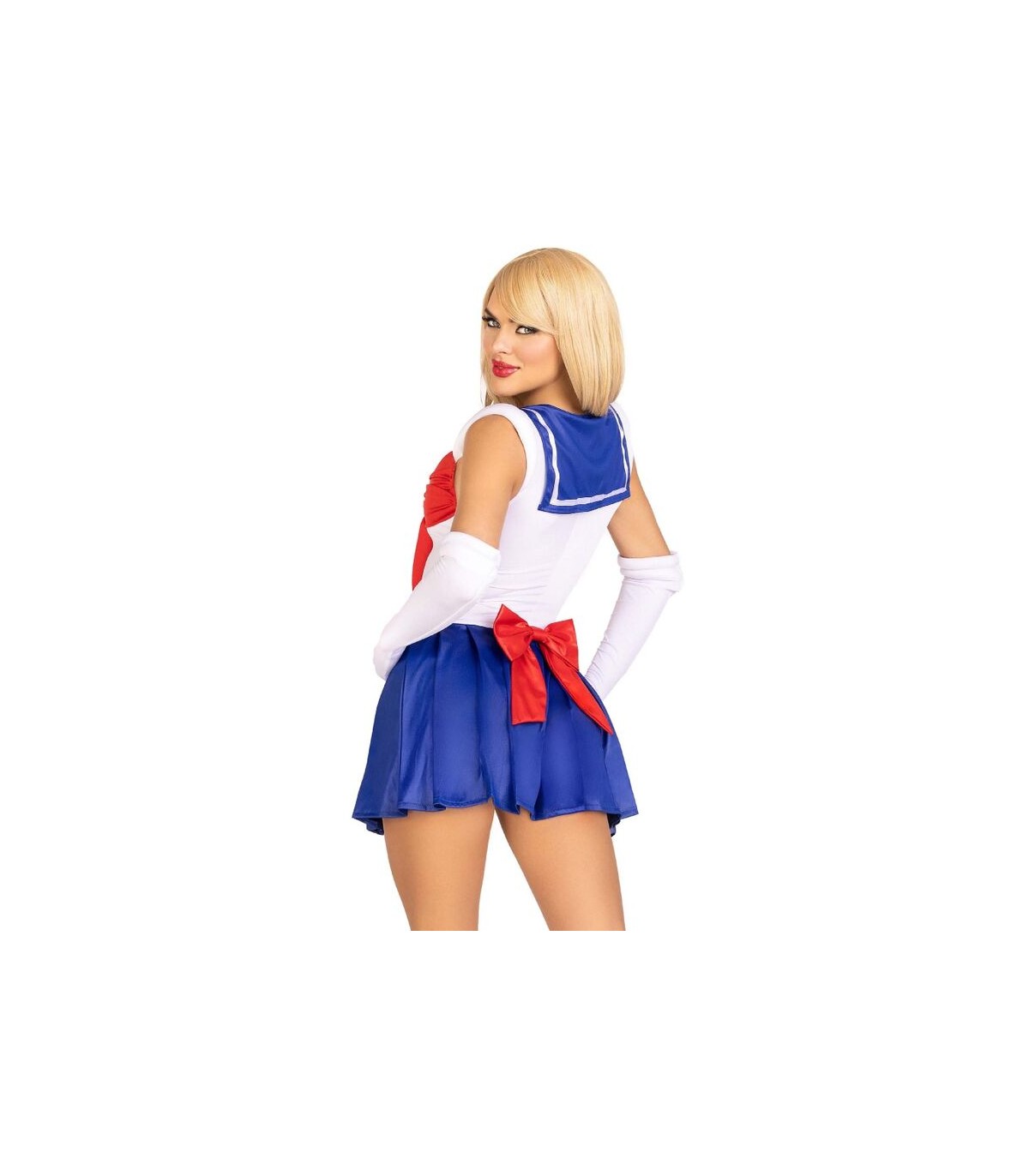 ¡Desata a la diva de dibujos animados que llevas dentro con este conjunto de 3 piezas de Marinera Sexy inspirado en la cultura pop! Ideal para Halloween o carnaval, este atrevido body con cierre a presión se destaca por un coqueto cuerpo recortado y una falda plisada juguetona.