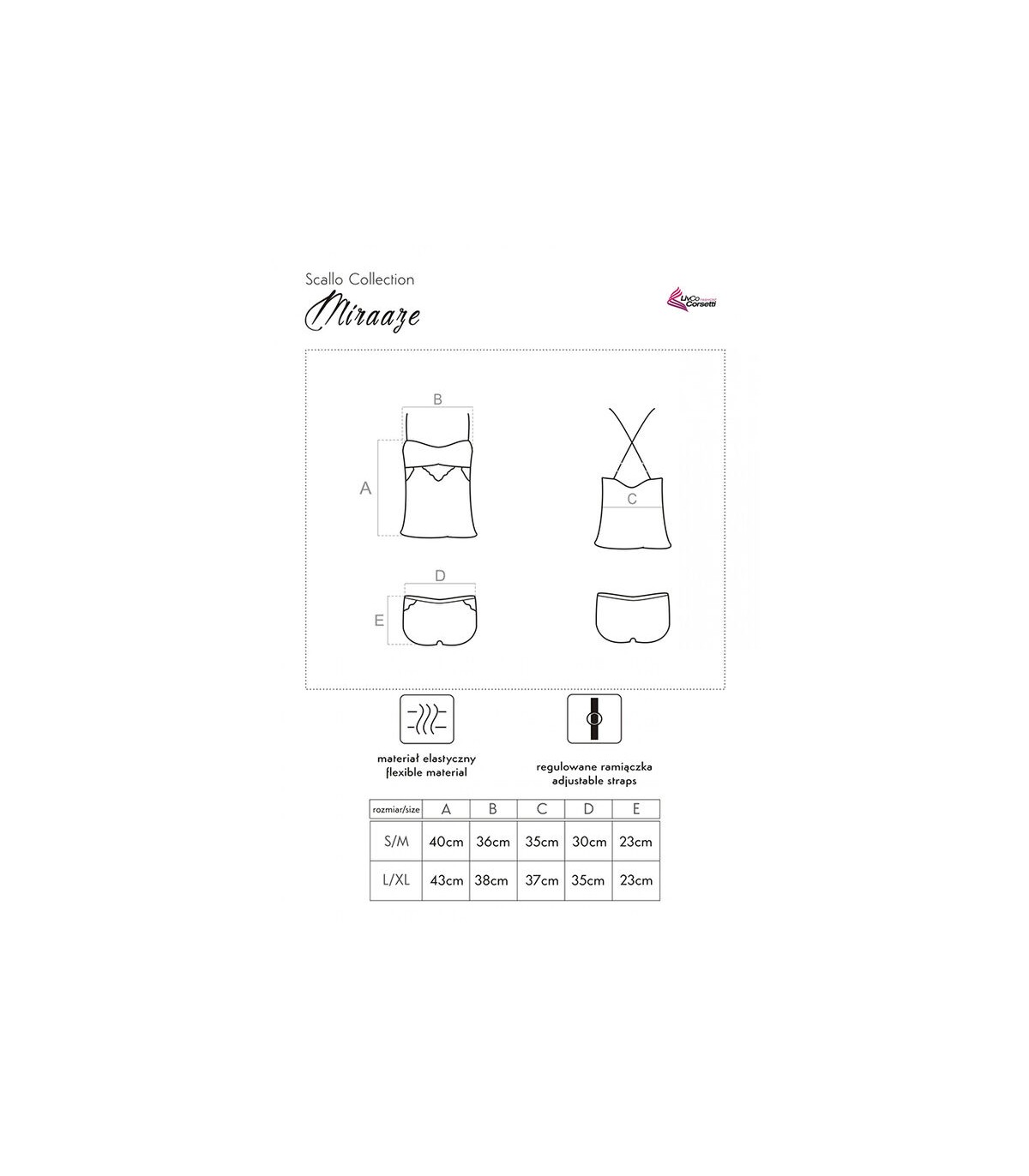 Se trata de un conjunto cómodo y femenino de LivCo Corsetti compuesto por camiseta y pantalón corto. Perfecto para los días cálidos, así como para dormir o como complemento para momentos llenos de pasión. Ropa interior creada pensando en las necesidades de cada mujer. Este impresionante conjunto de lencería combina sutileza y funcionalidad con atractivo sexual. Ropa interior llamativa diseñada para mujeres atrevidas y seguras de sí mismas que no temen enfatizar su feminidad. El intrigante diseño del conjunto, que enfatiza los encantos femeninos, sin duda hará que cada mujer se sienta extremadamente sexy y valiente con él. EL CONJUNTO CONSTA DE 2 PARTES: CAMISETA + SHORT