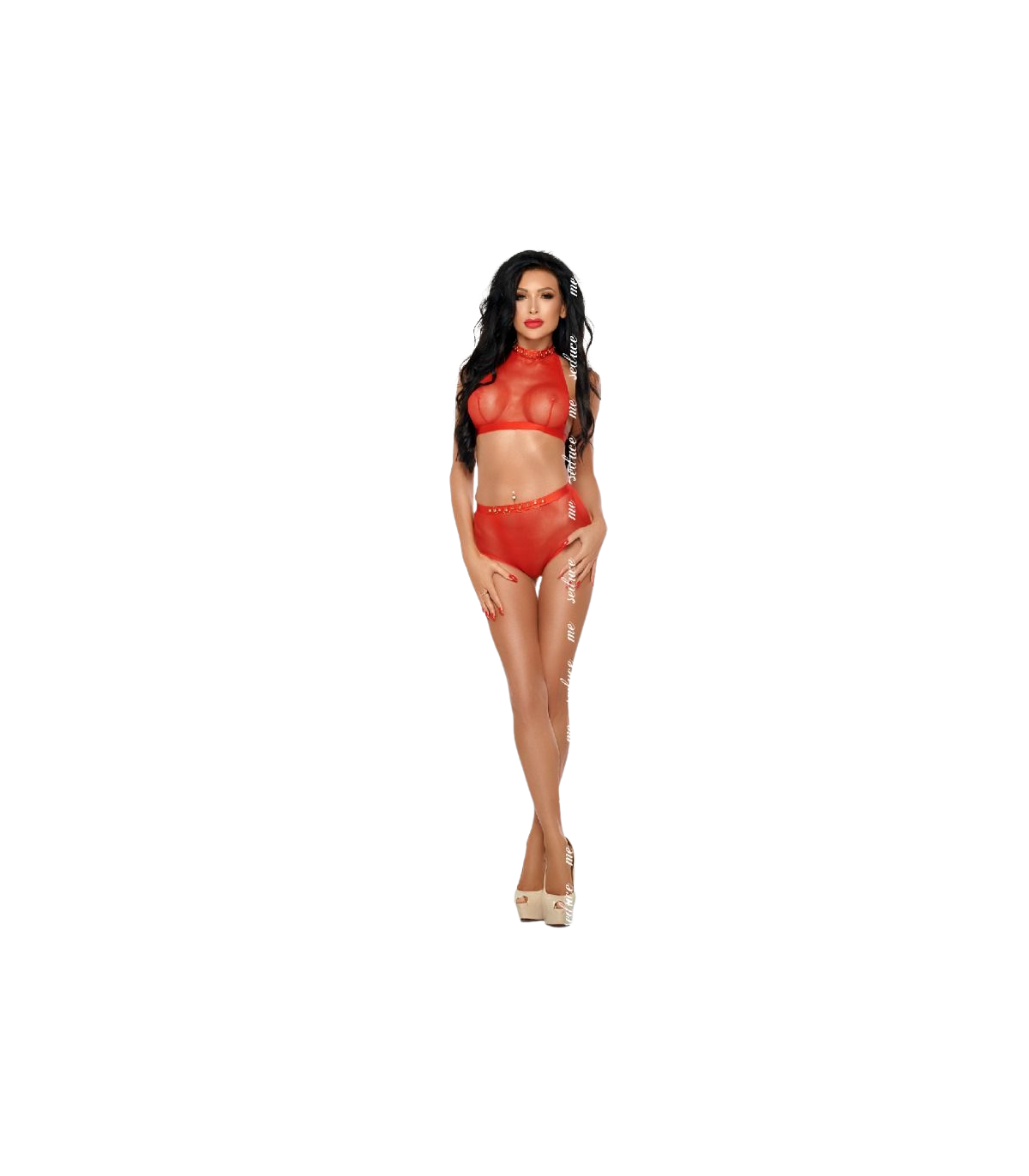 • La parte de arriba del top y los panties están decorados con elementos dorados como corchetes y anillas.
