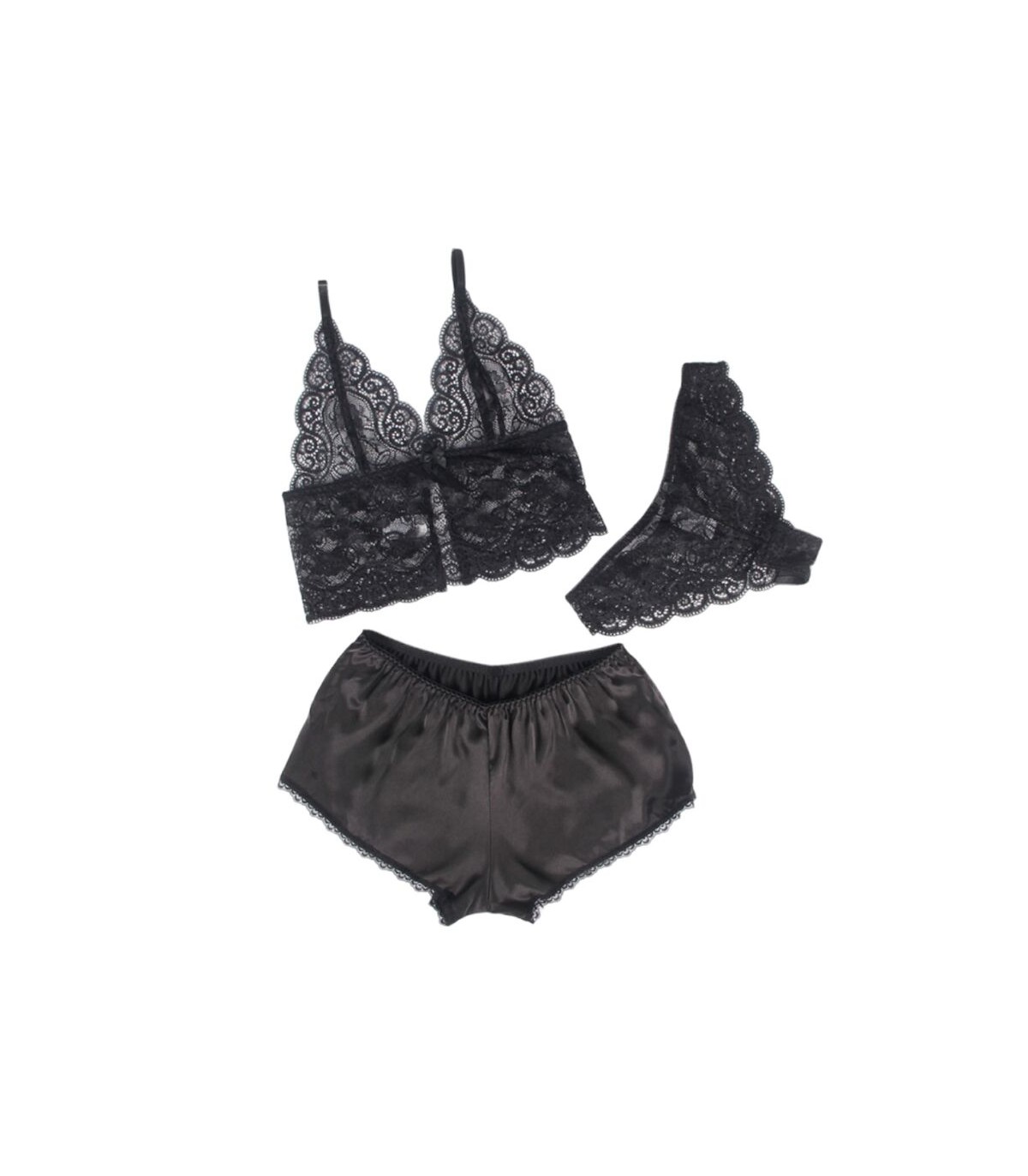 SUBBLIME - 953928 SET 3 PIEZAS ENCAJE Y SATEN NEGRO L/XL