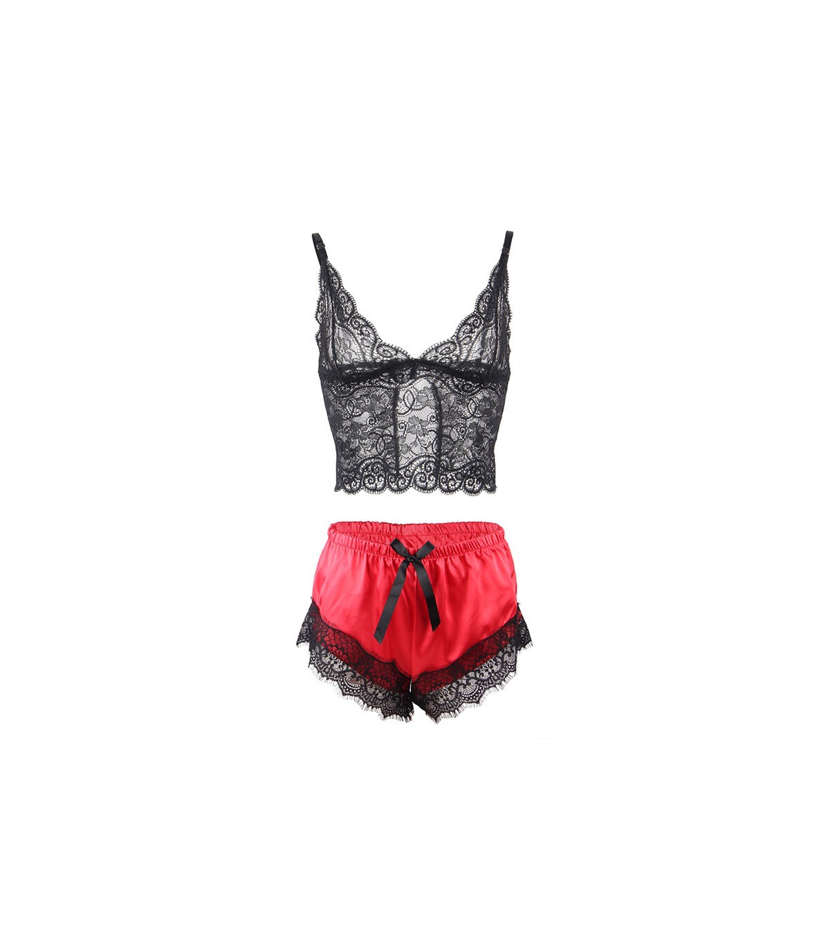 SUBBLIME - 953966 PIJAMA SEXY SATEN Y ENCAJE NEGRO/ROJO L/XL