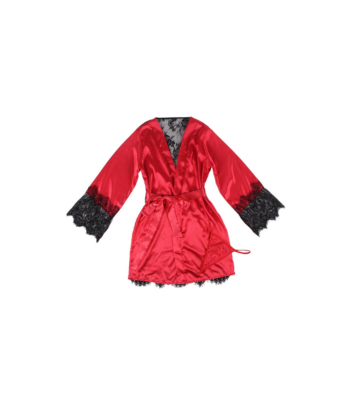 SUBBLIME - 954024 CAMISON DE ENCAJE ESPALDA TRANSPARENTE + TANGA ROJO/NEGRO L/XL