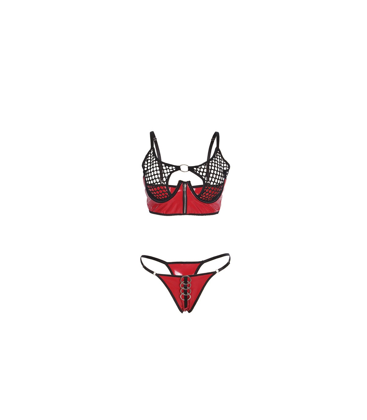 SUBBLIME - 955533 CONJUNTO SUJETADOR CON CREMALLERA DE MALLA DE CHAROL ROJO S/M