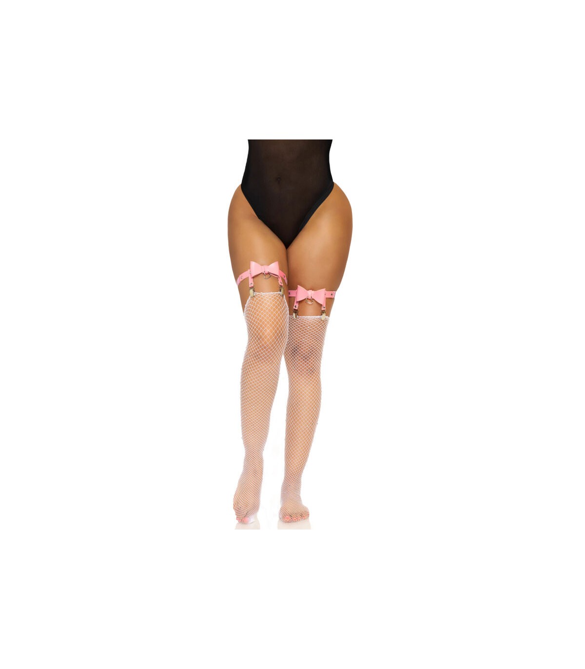 Liguero de cuero vegano con lazo, correas ajustables y aro en forma de corazón.