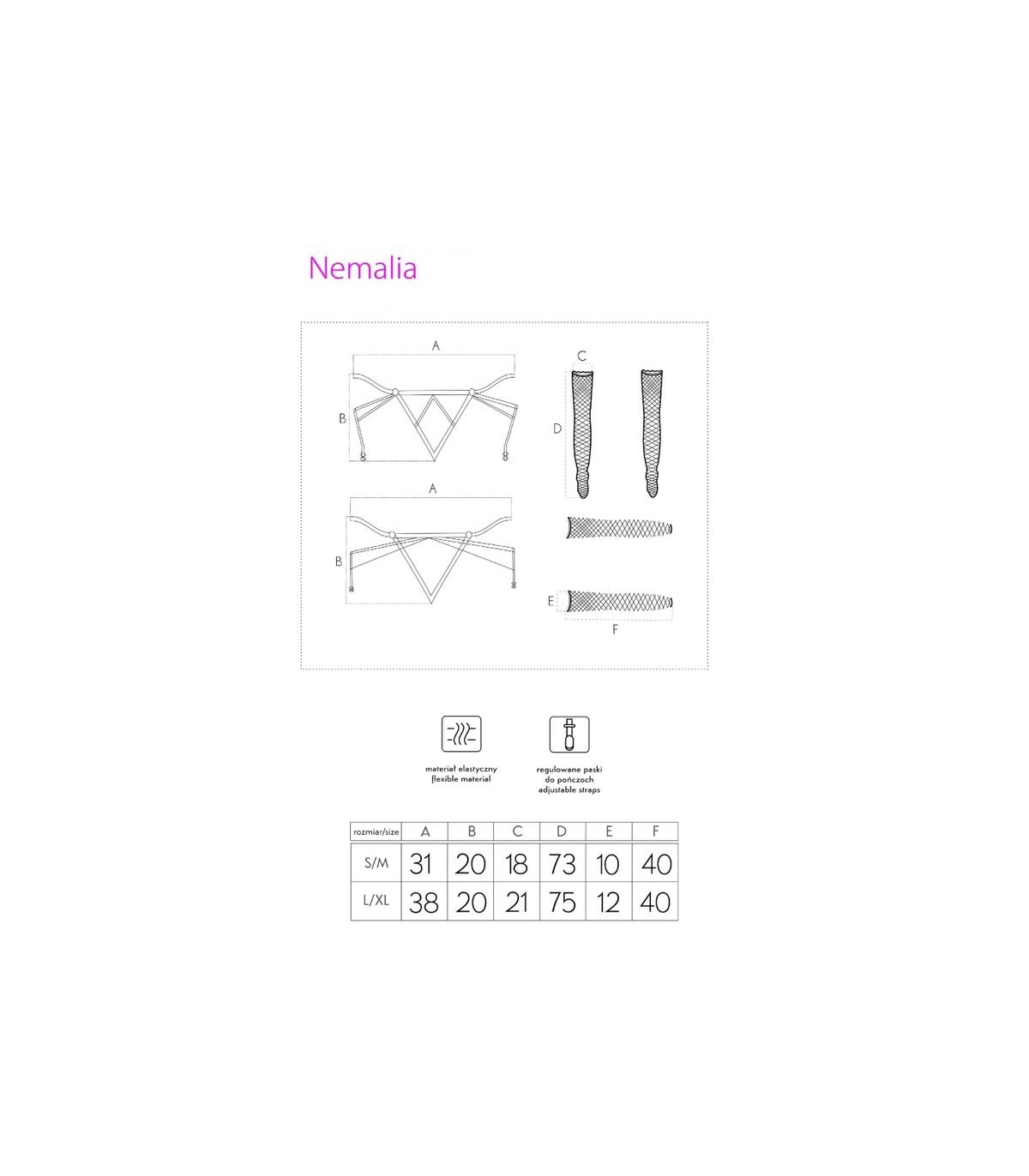 El set de liguero, medias y guantes Nemalia de la marca Livco Corsetti Fashion es la encarnación de la elegancia y la sensualidad. Diseñado para destacar la belleza natural del cuerpo femenino, este conjunto es ideal para ocasiones especiales o para añadir un toque sofisticado a tu lencería diaria.