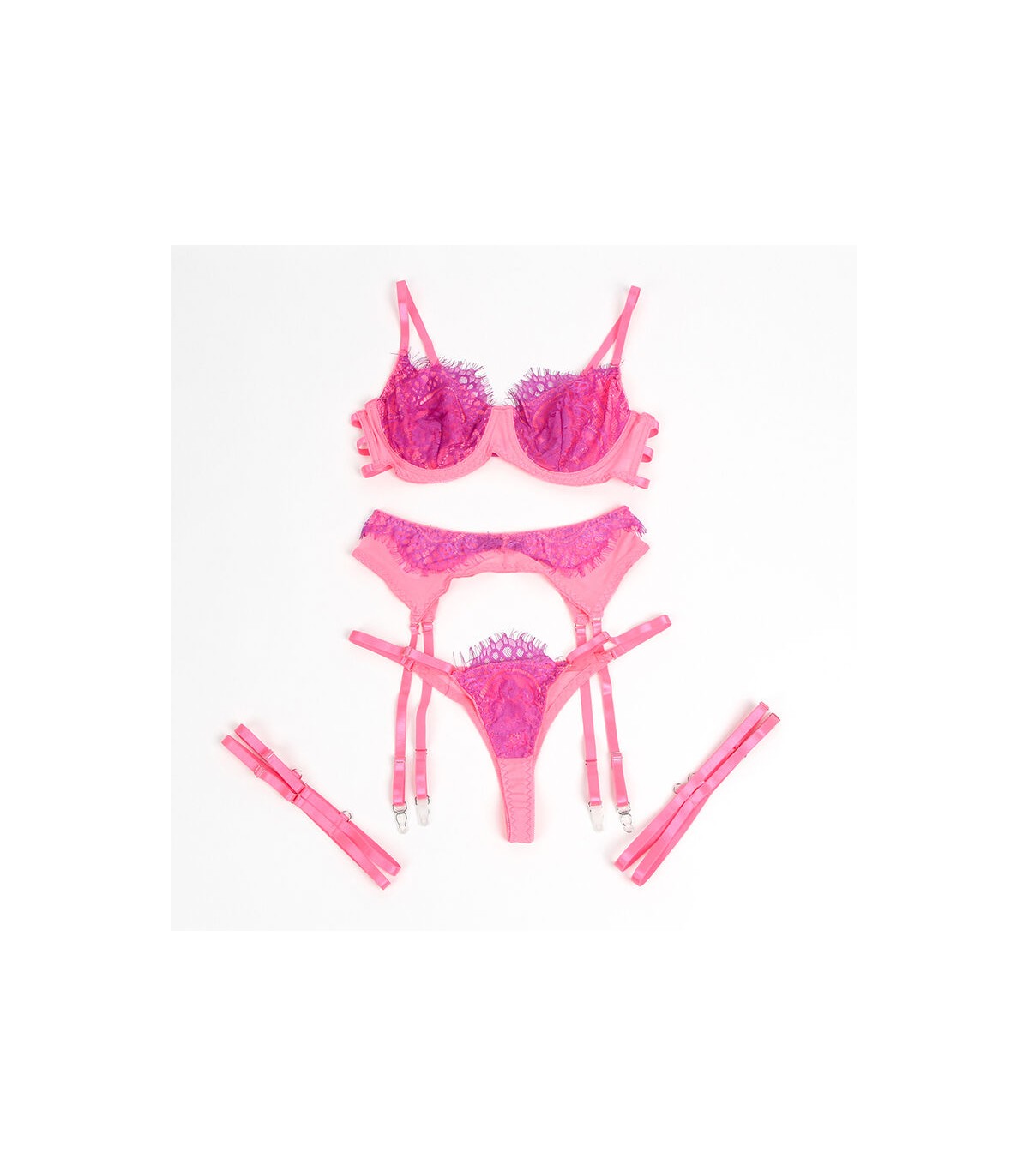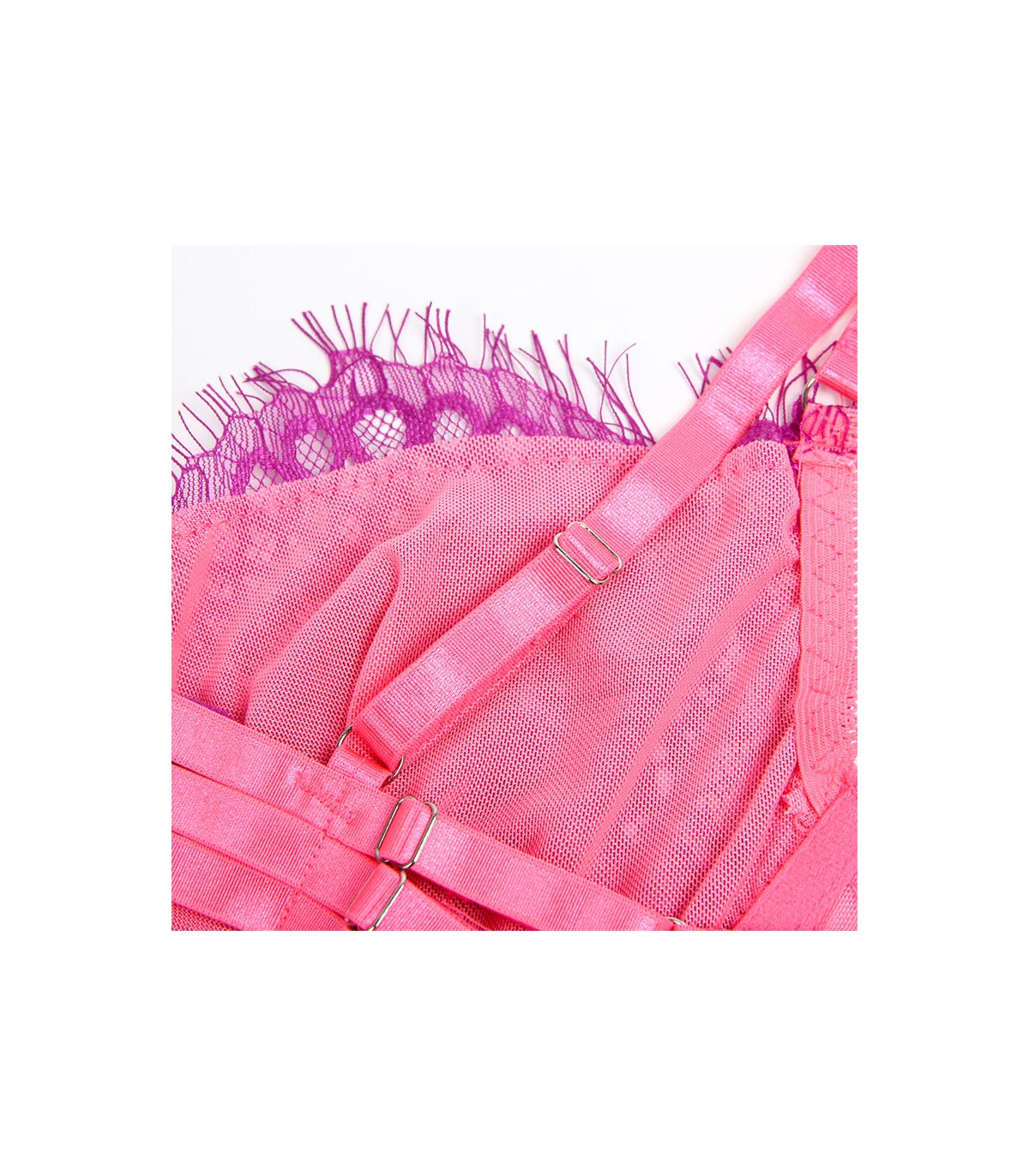 El Conjunto de Lencería Rosa con Encaje de Pestañas y Diseño Spliced de SUBBLIME es una expresión de elegancia y sensualidad. Perfecto para quienes buscan una pieza que combine delicadeza y confianza, este conjunto está diseñado para hacerte sentir única y empoderada en cada detalle.