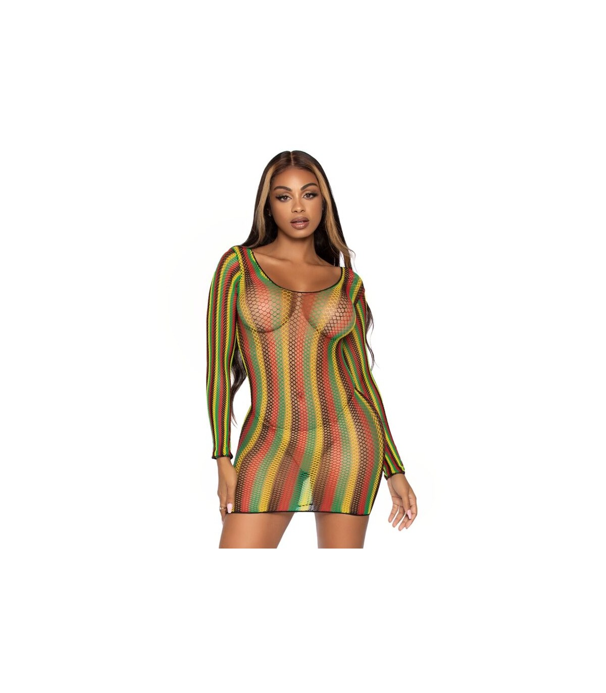 Minivestido de red rasta con mangas largas. Con Leg Avenue reforzarás tu feminidad y obtendrás ese toque justo de seducción, sensualidad y elegancia.