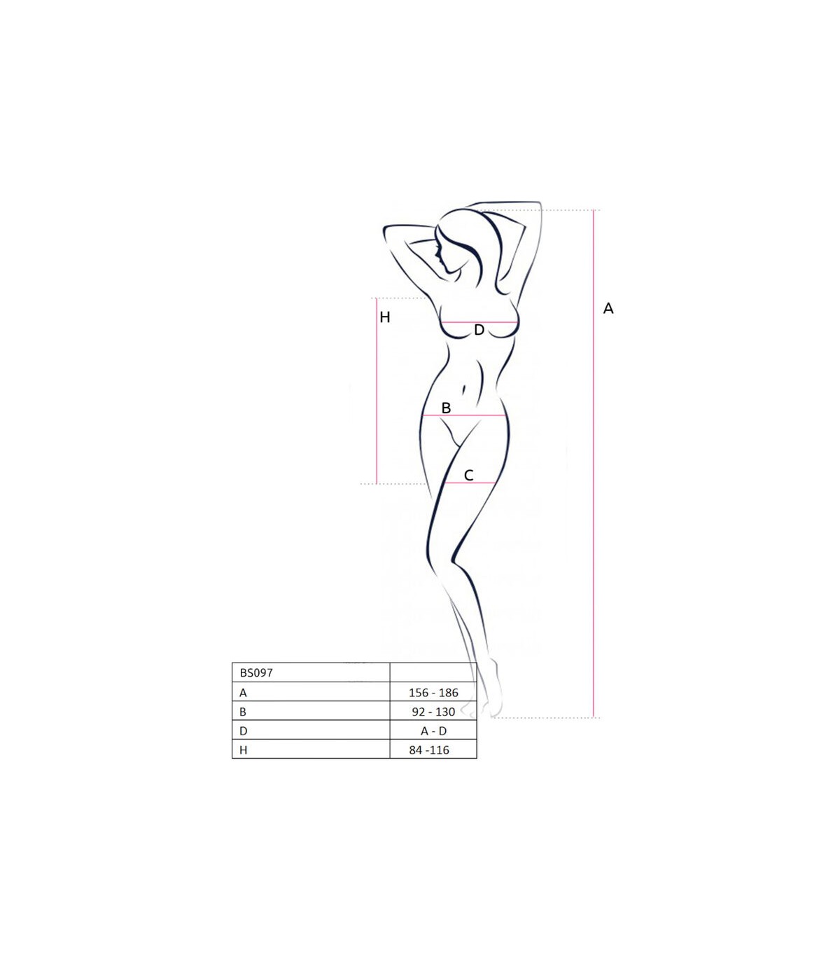 El bodystocking de la prestigiosa marca PASSION es una obra maestra de la sensualidad con un diseño espectacularmente sexy que se adapta al cuerpo en talla única. Este atuendo se distingue por su impresionante estampado, que añade un toque de intriga y pasión a tu estilo.