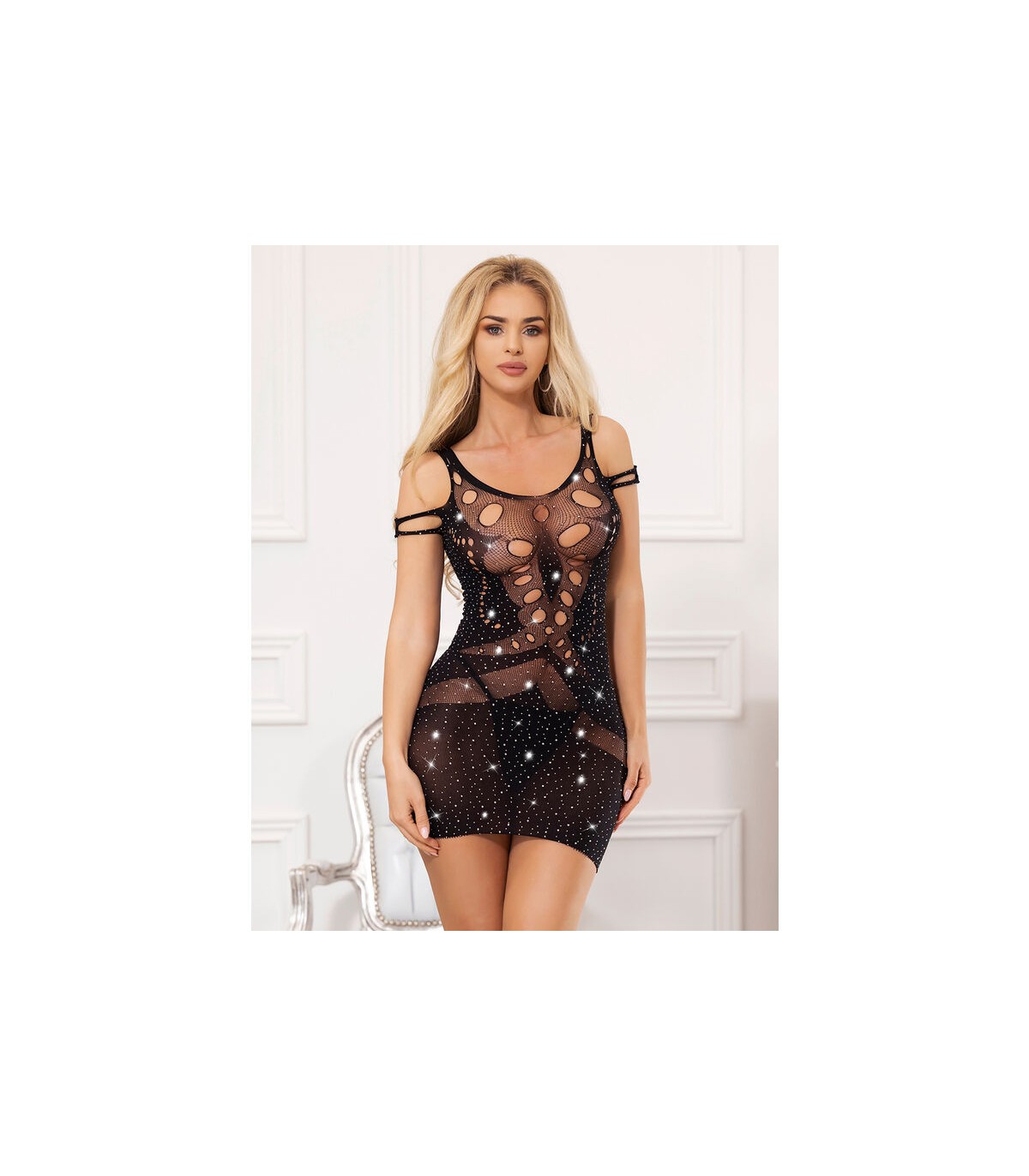 SUBBLIME - 952198 VESTIDO DE REJILLA CON DIAMANTES BRILLANTES NEGRO TALLA ÚNICA