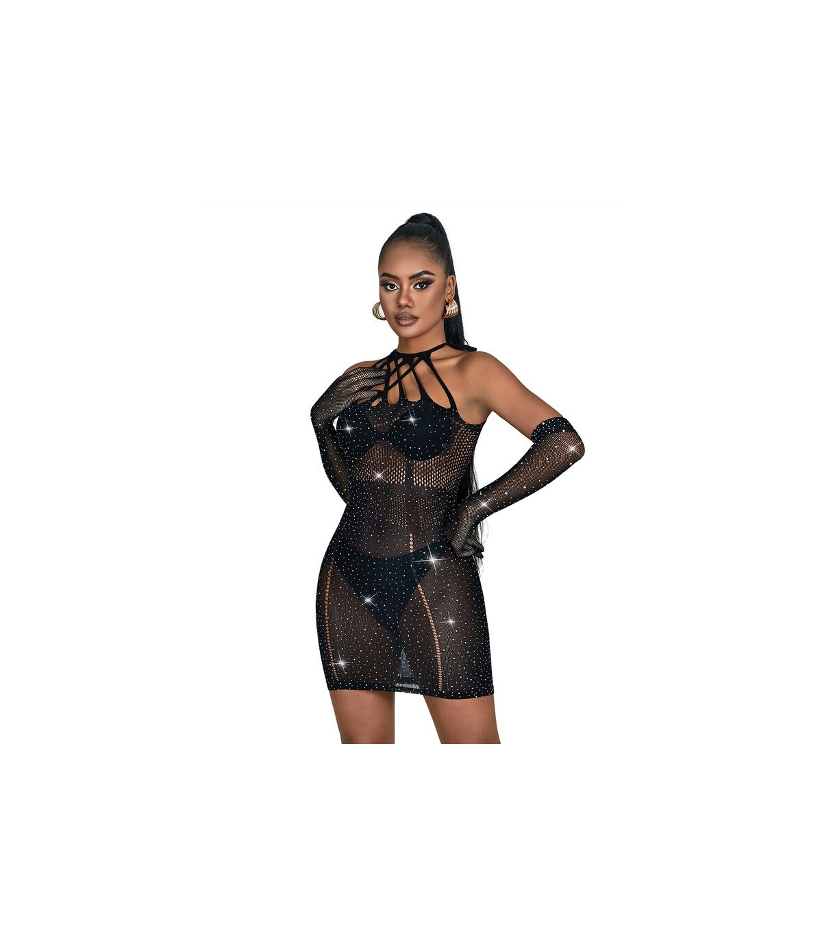 SUBBLIME - 952235 VESTIDO DE REJILLA CON BRILLANTES NEGRO TALLA ÚNICA