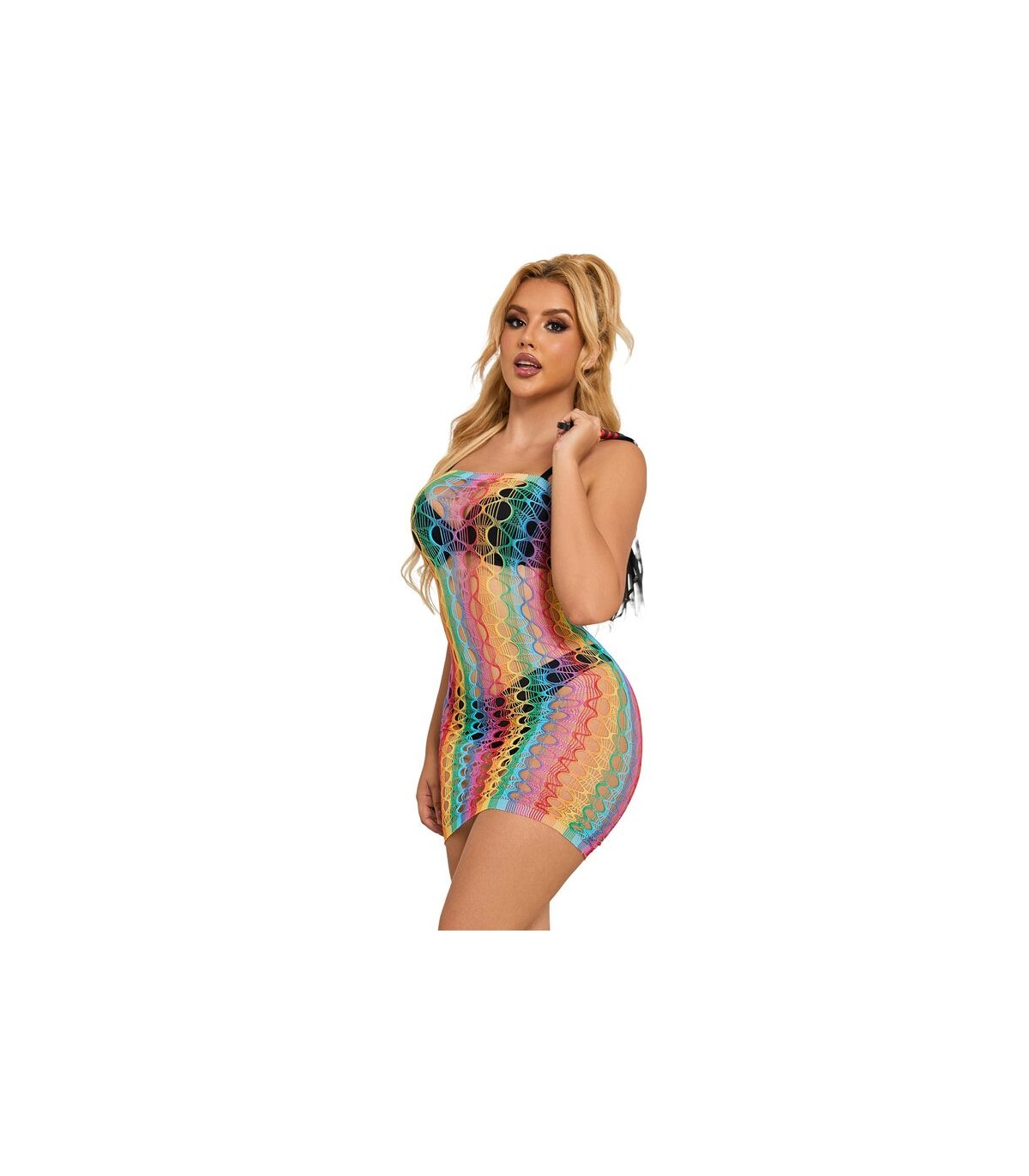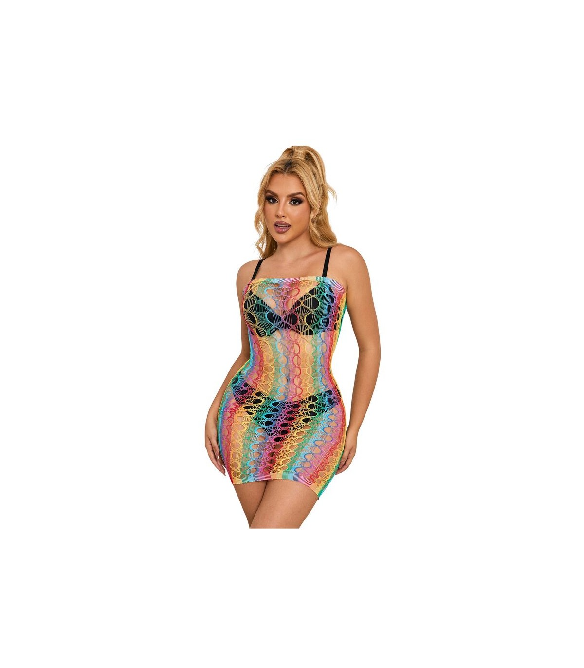SUBBLIME - 952365 VESTIDO DE REJILLA HOMBROS DESCUBIERTOS ARCOIRIS TALLA ÚNICA