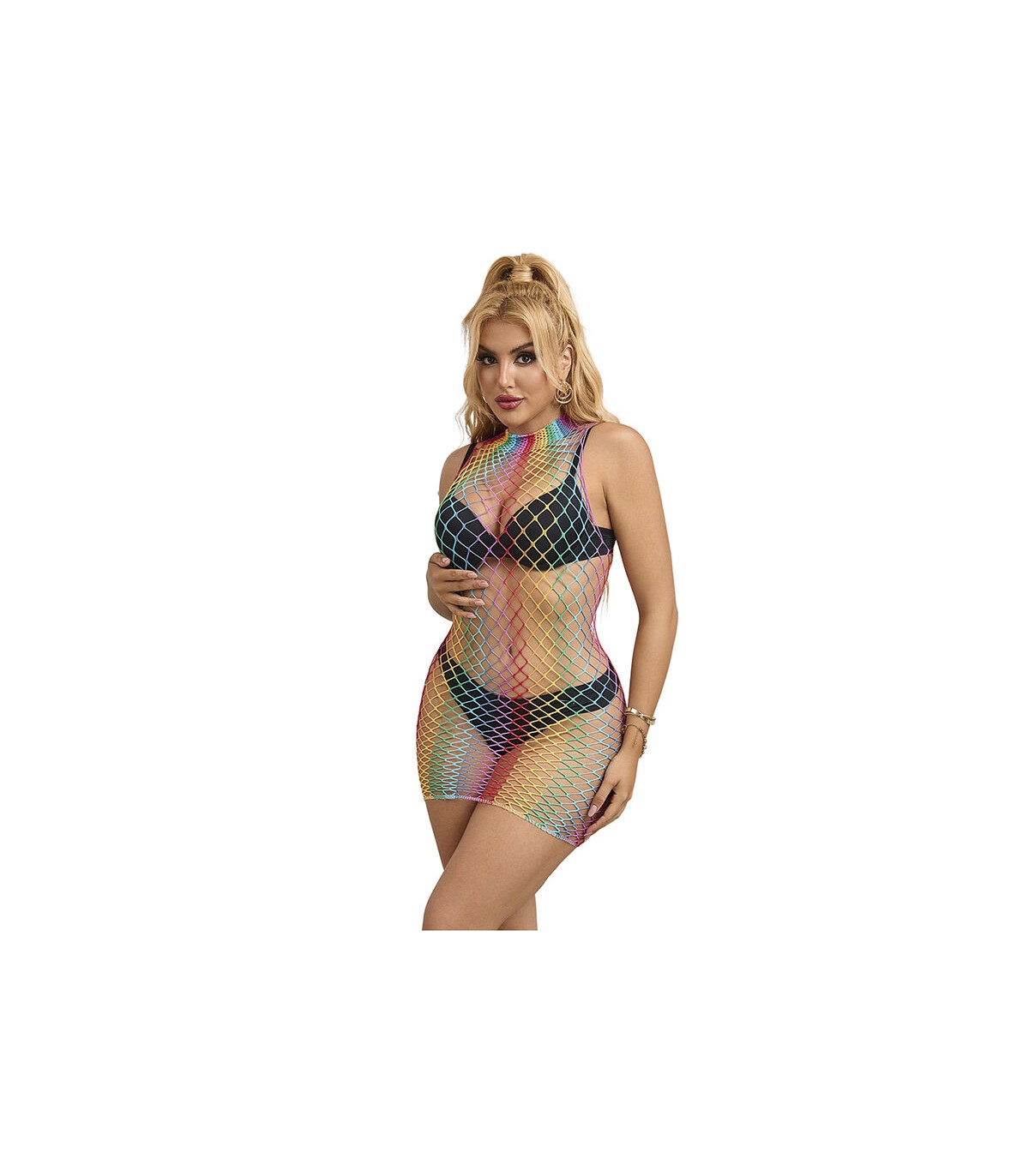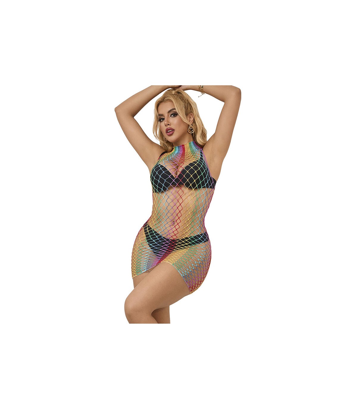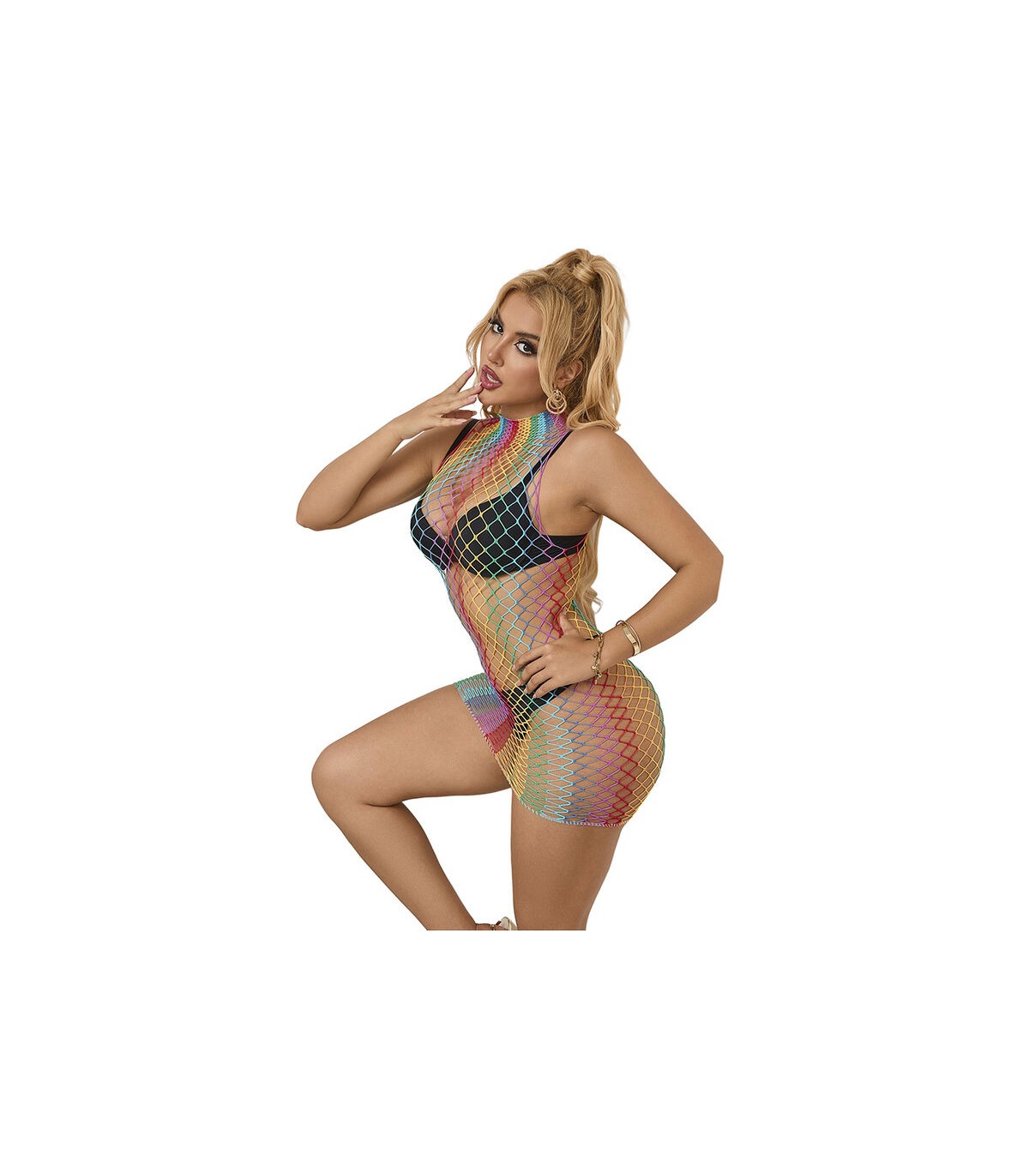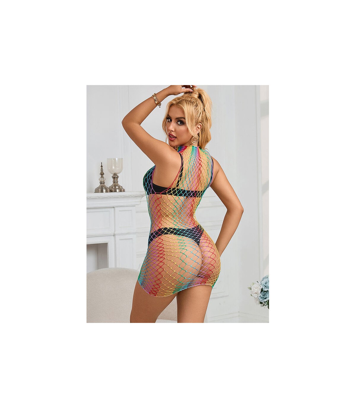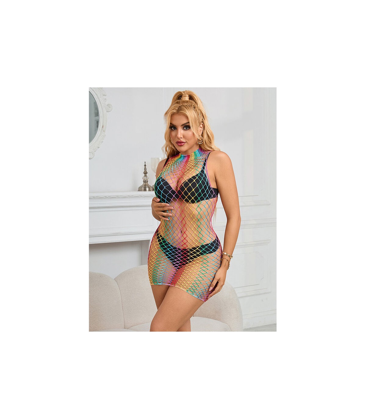 Cuello alto: Añade un toque elegante y sofisticado, creando un contraste interesante con la sensualidad de la rejilla.