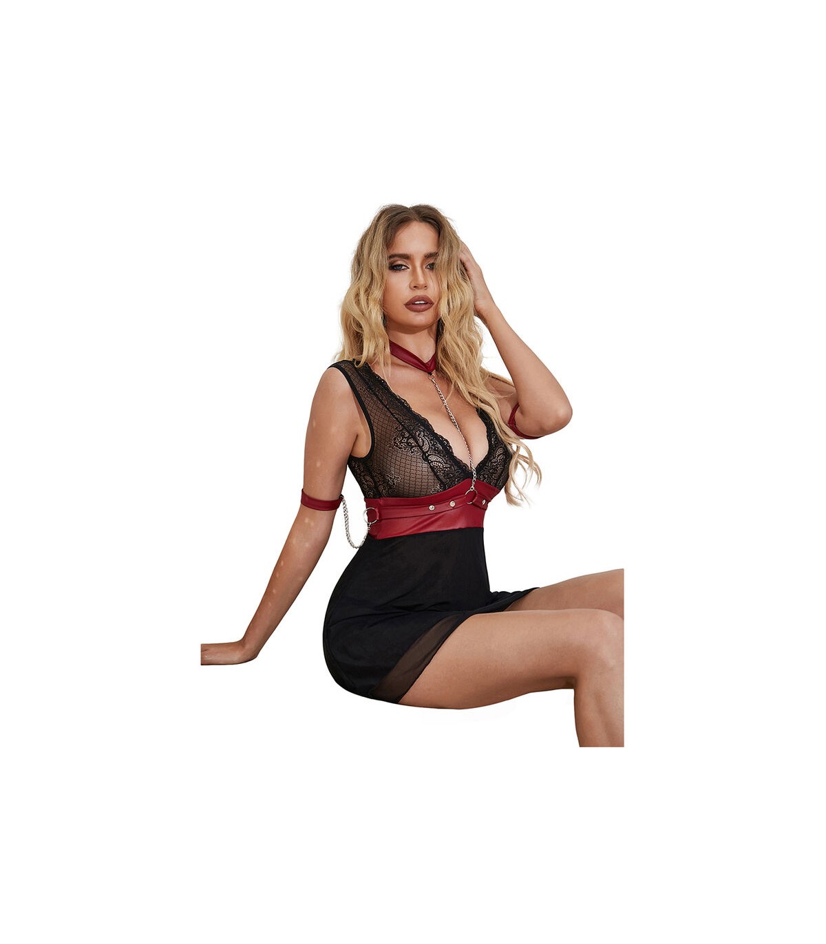 SUBBLIME - 954420 VESTIDO BONDAGE DE ENCAJE NEGRO S/M