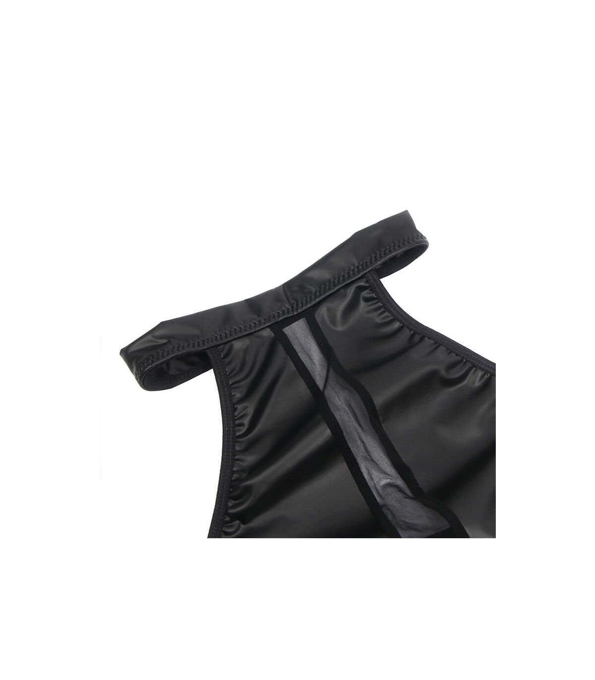 El color negro, clásico y atemporal, junto con los detalles en cuero PU, añade un toque audaz y lujoso que convierte esta pieza en un imprescindible para quienes buscan combinar elegancia y sensualidad.