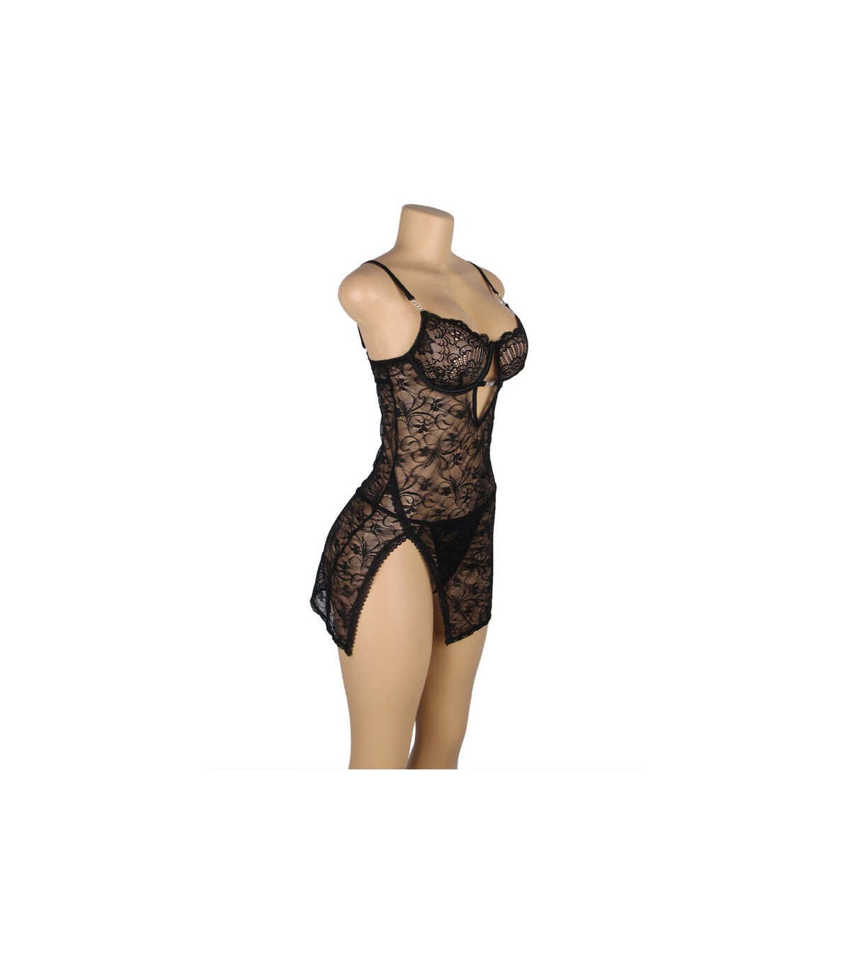 SUBBLIME - 954185 BABYDOLL DE ENCAJE CON TIRANTES AJUSTABLES NEGRO S/M