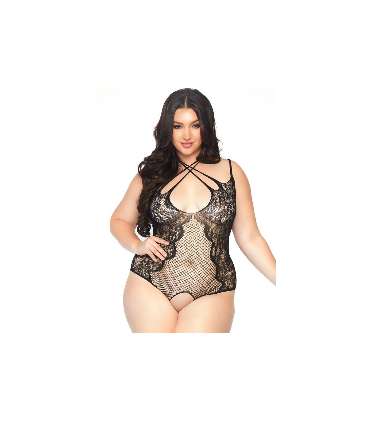 Body de red y encaje sin entrepierna con cuello halter de tirantes y tiras entrecruzadas en la espalda fabricado por la prestigiosa marca de lencería Leg Avenue. Con Leg Avenue reforzarás tu feminidad y obtendrás ese toque justo de seducción, sensualidad y elegancia.