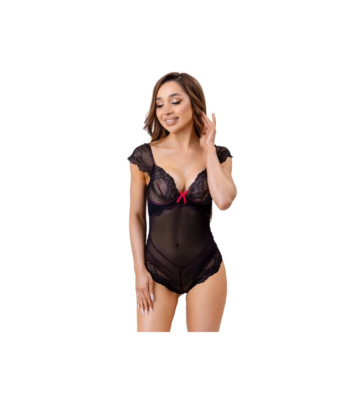 Atrévete a deslumbrar con este body de encaje negro y haz de cada momento una ocasión inolvidable.