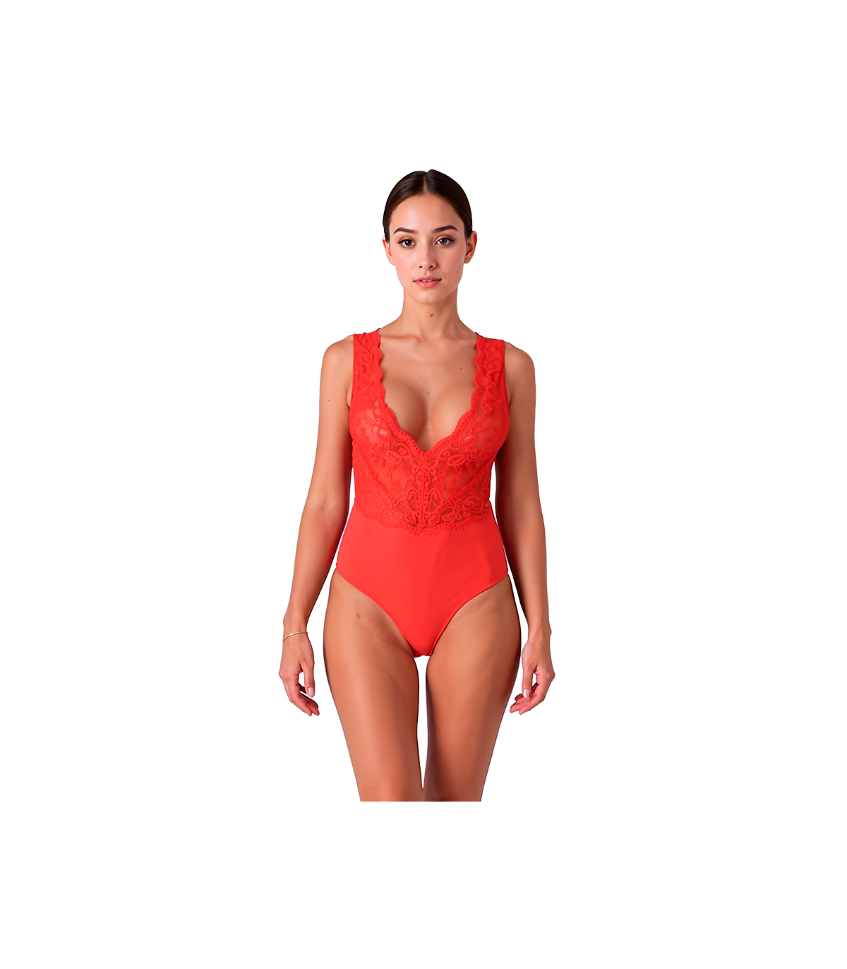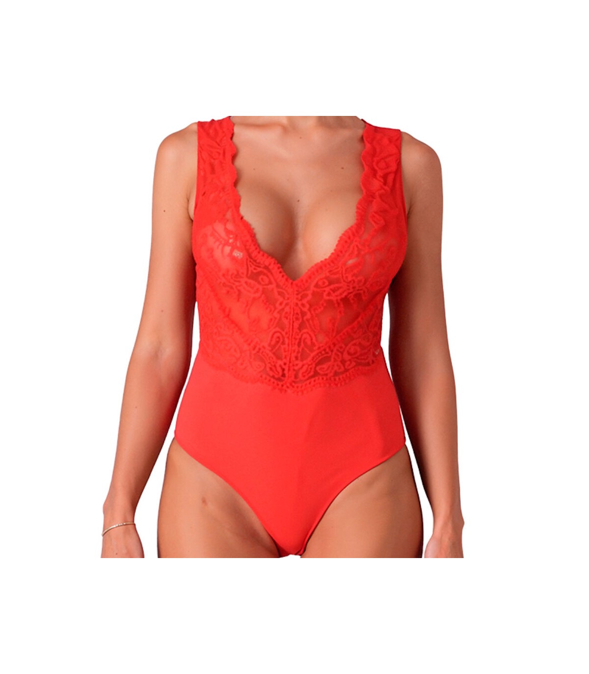 • Estilo: Body con escote en V pronunciado en la parte delantera y espalda abierta con detalles de encaje