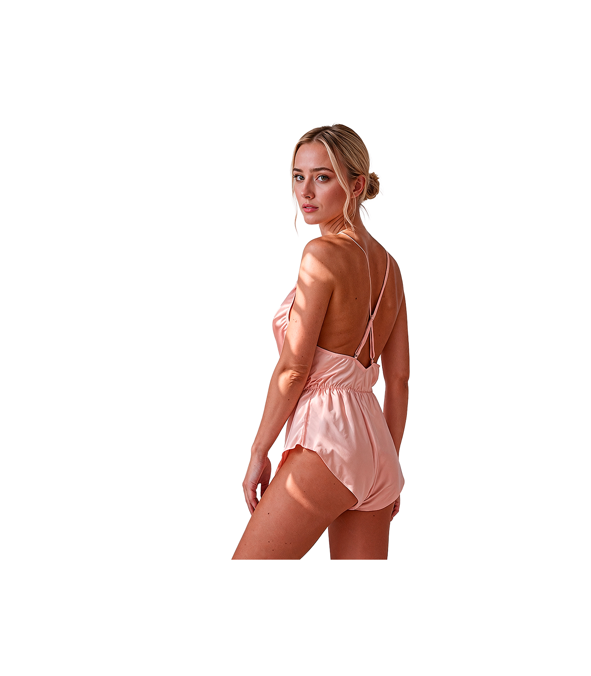 • Estilo: Body satinado con escote en V pronunciado y tirantes cruzados ajustables en la espalda