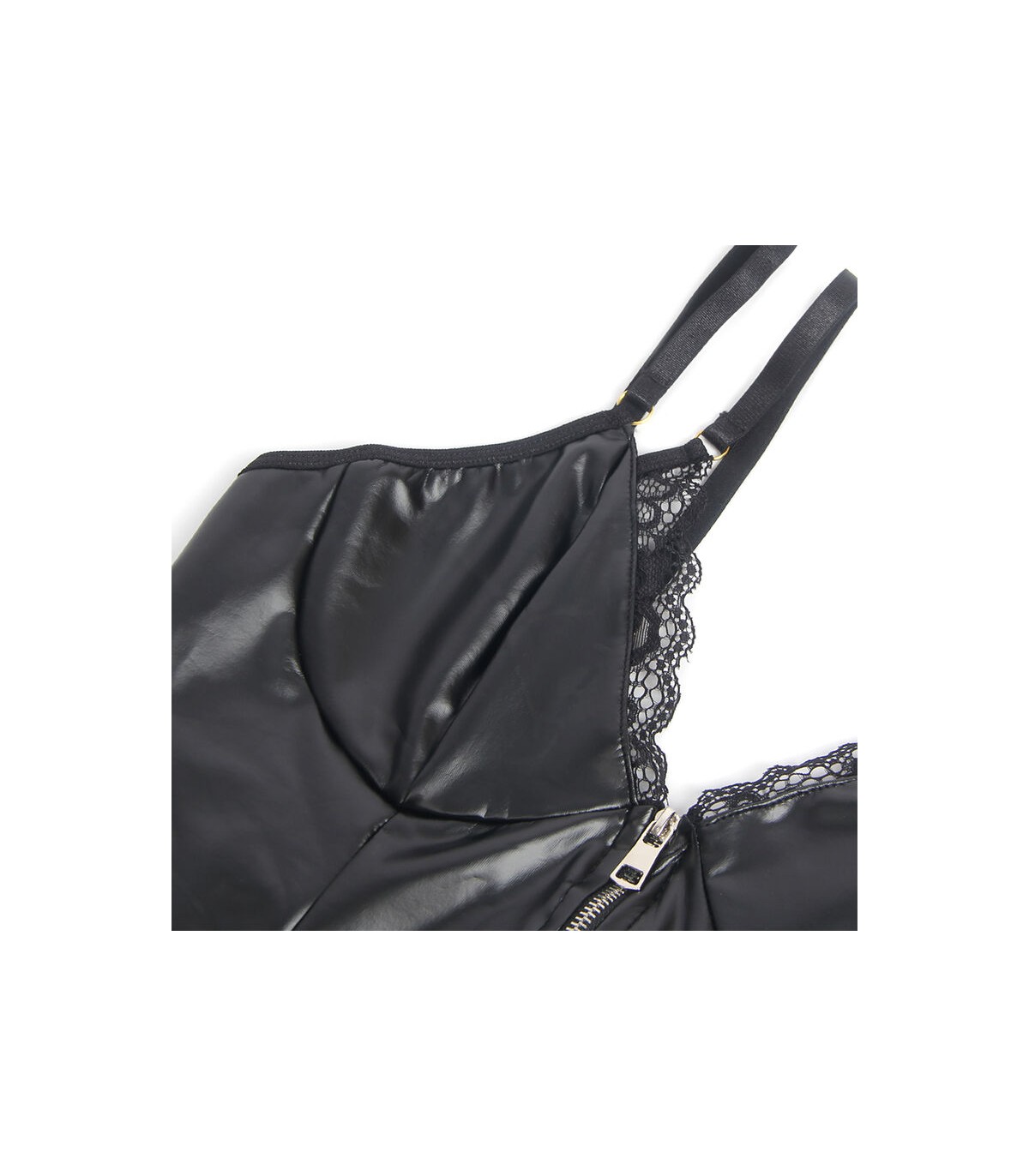 Confeccionado con materiales de alta calidad (95% poliéster y 5% elastano/spandex), este conjunto ofrece una textura suave, elástica y cómoda que se adapta perfectamente a las curvas de tu cuerpo. El detalle de la cremallera frontal no solo añade un toque moderno, sino que también facilita su uso, convirtiendo esta prenda en una mezcla de practicidad y diseño atrevido. Los ligueros ajustables aportan un toque clásico y sensual que completa este diseño único.