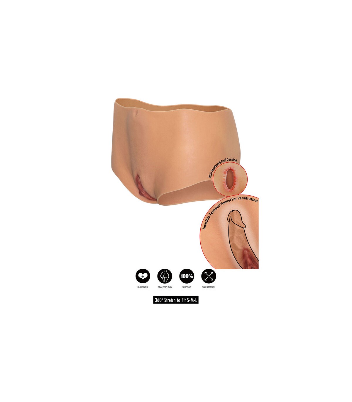 Fabricado en silicona 100 % pura, el material destaca por su tacto suave, flexibilidad y resistencia. El diseño incluye una vagina abierta con túnel interior texturizado, discretamente integrado para ofrecer sensaciones profundas y realistas, así como una abertura anal trasera reforzada, pensada para una experiencia intensa y segura. Cada detalle ha sido cuidadosamente trabajado para lograr un alto nivel de realismo visual y una experiencia inmersiva.