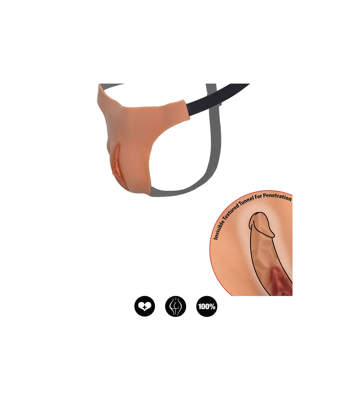 La prenda incorpora una vagina abierta con túnel interior texturizado, pensada para intensificar las sensaciones y ofrecer una experiencia profunda y altamente realista. Cada detalle ha sido trabajado para lograr un acabado natural que favorece la inmersión total en la fantasía y permite disfrutar de momentos intensos y prolongados.