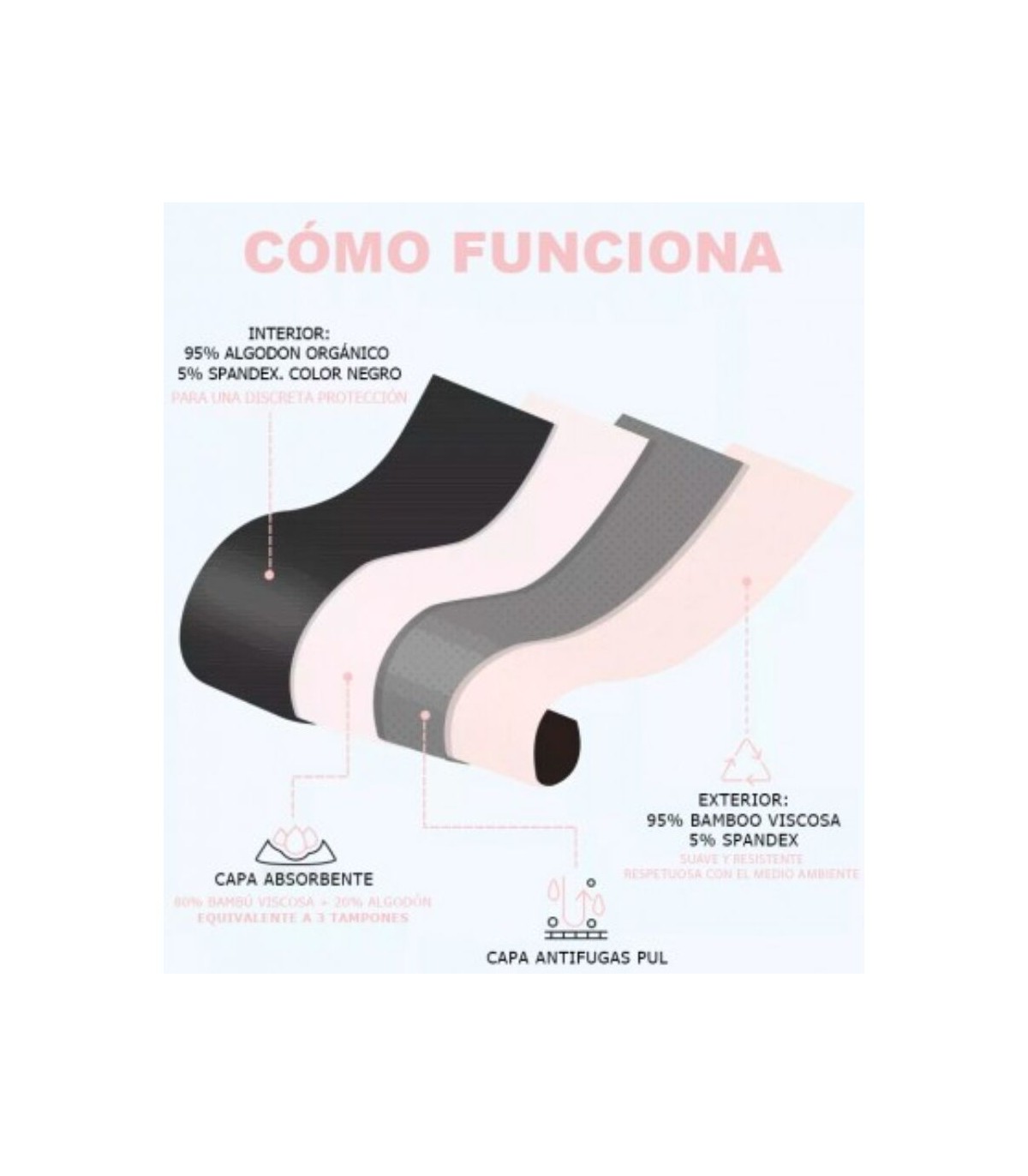 Siéntete libre, cómoda y segura con la nueva Braguita Menstrual Irisana íntima. Absorbe el flujo menstrual y pequeñas pérdidas de orina (equivalente a 3 tampones). Sin olores, sin humedad, sin fugas y totalmente transpirable. No utilices más productos desechables, ¡reutiliza! Cada gesto cuenta.