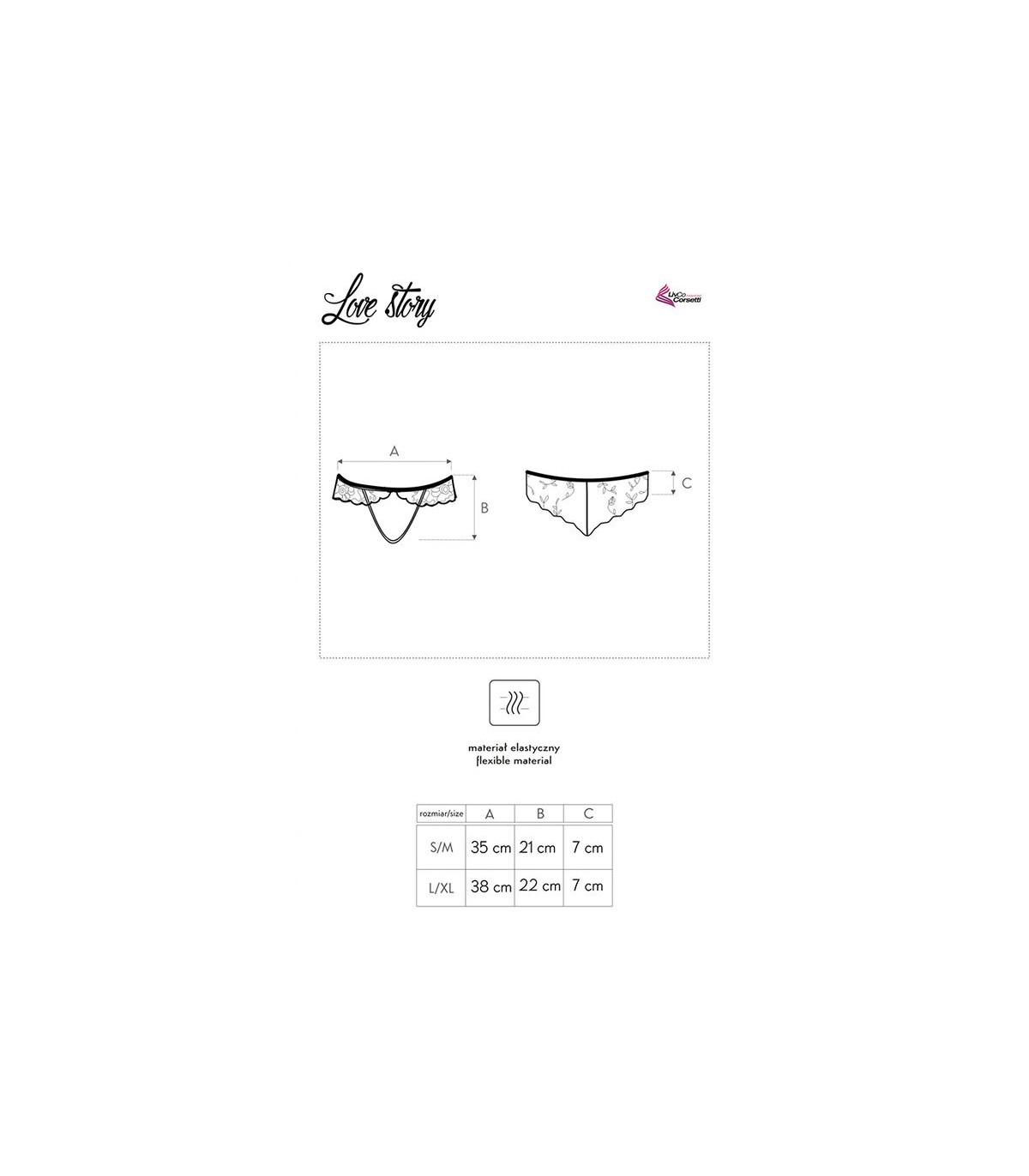 El modelo ofrecido es extremadamente sensual y sexy. Las bragas son muy impresionantes y tentadoras con encaje translúcido. El encaje es sólido, de excelente calidad y muy bien hecho. El material también es suave y delicado y se adapta perfectamente a la forma del cuerpo, realzándolo sutilmente. Las bragas tienen una abertura en la entrepierna. Su rasgo característico es un frente atrevido y una parte trasera elegante y bellamente terminada. Definitivamente se trata de lencería para ocasiones especiales, ropa de noche. Este modelo es una propuesta ideal para las mujeres que aprecian el negro clásico combinado con un corte elegante y un encaje sensual. Sin embargo, la forma elegante de las bragas no las hace incómodas, al contrario, son extremadamente cómodas de llevar y aireadas. Además, nos ayudan 2 tallas: S/M y L/XL, gracias a las cuales podemos elegir la talla de ropa interior perfecta para nosotros. Este modelo puede ser un bonito regalo para una ocasión especial: un aniversario, el día de San Valentín o el día de San Nicolás, aunque las oportunidades de hacer un regalo se presentan casi todos los días.