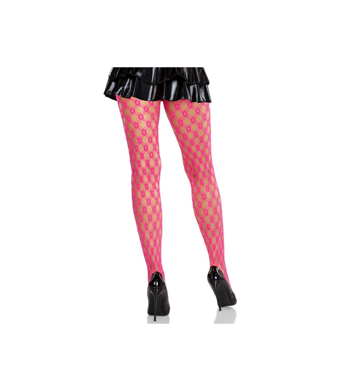 LEG AVENUE - MALLAS DE ENCAJE CON OJALES ROSA NEÓN