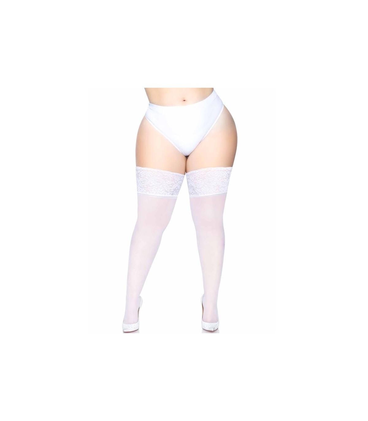 Medias de spandex con liga superior de encaje ancho de 15 cm talla plus
