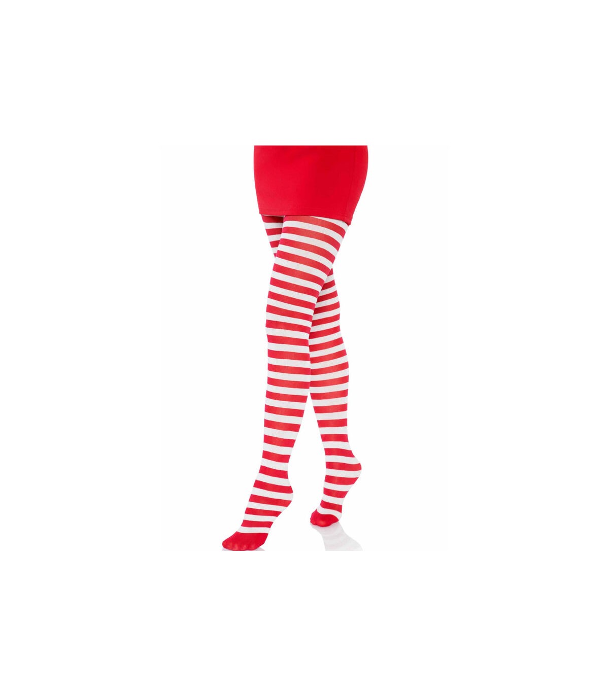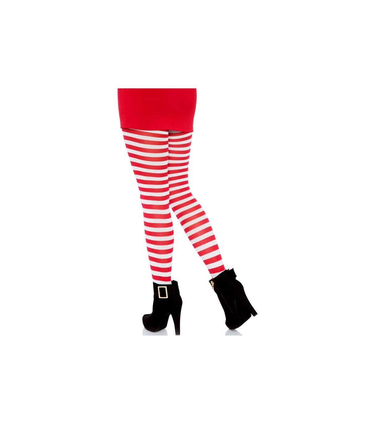 El diseño específico de estas medias destaca por las rayas rojas y blancas que recorren toda la longitud de la pierna. Las rayas rojas y blancas agregan un elemento de color y patrón que rompe con la simplicidad del nailon, creando un efecto visual dinámico y atractivo. Este patrón de rayas puede variar en grosor y disposición, permitiendo opciones para diferentes gustos y estilos.